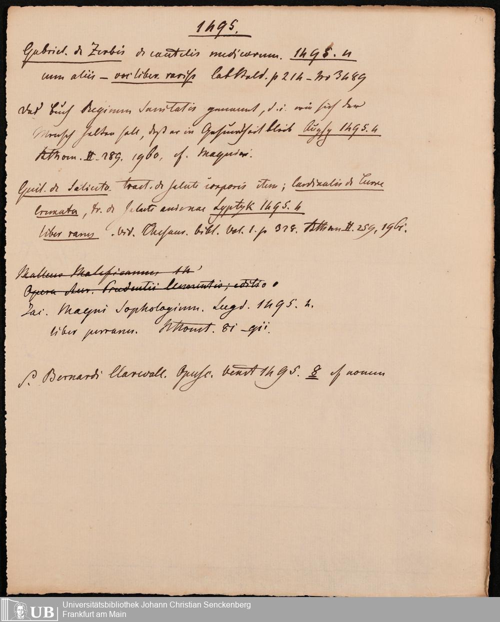 Ms. Ff. G. Kloß IV.4 - Materialien zu einer Bibliographie der Drucke. Chronologisch geordnet.