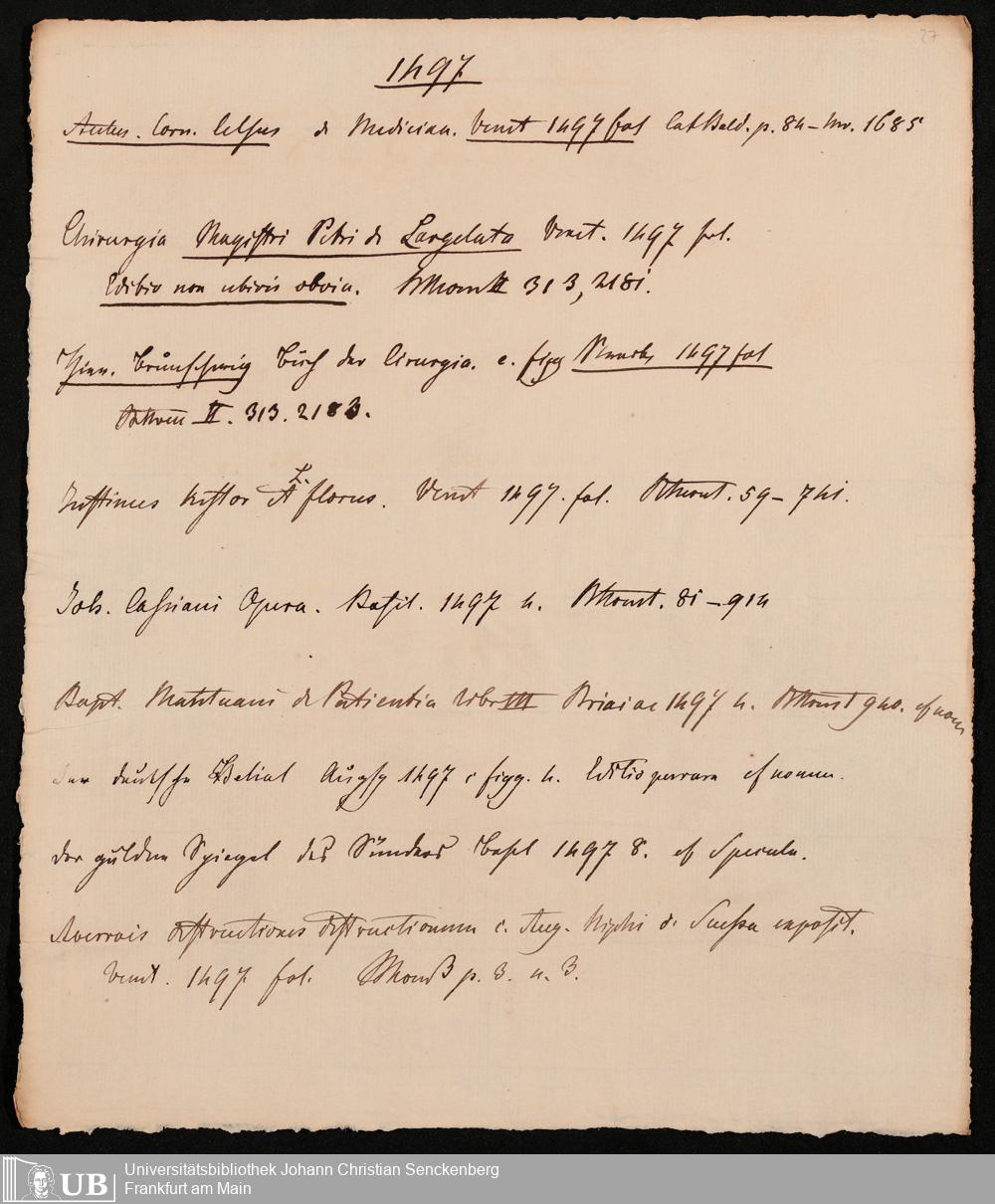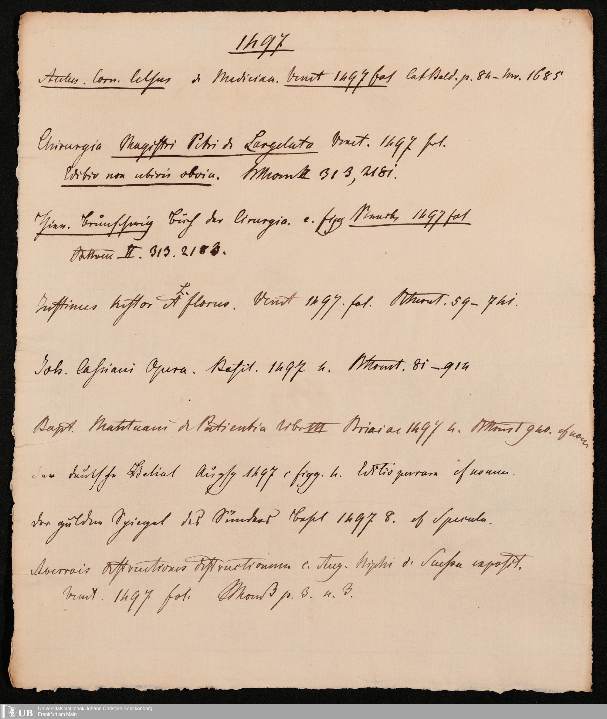 Ms. Ff. G. Kloß IV.4 - Materialien zu einer Bibliographie der Drucke. Chronologisch geordnet.