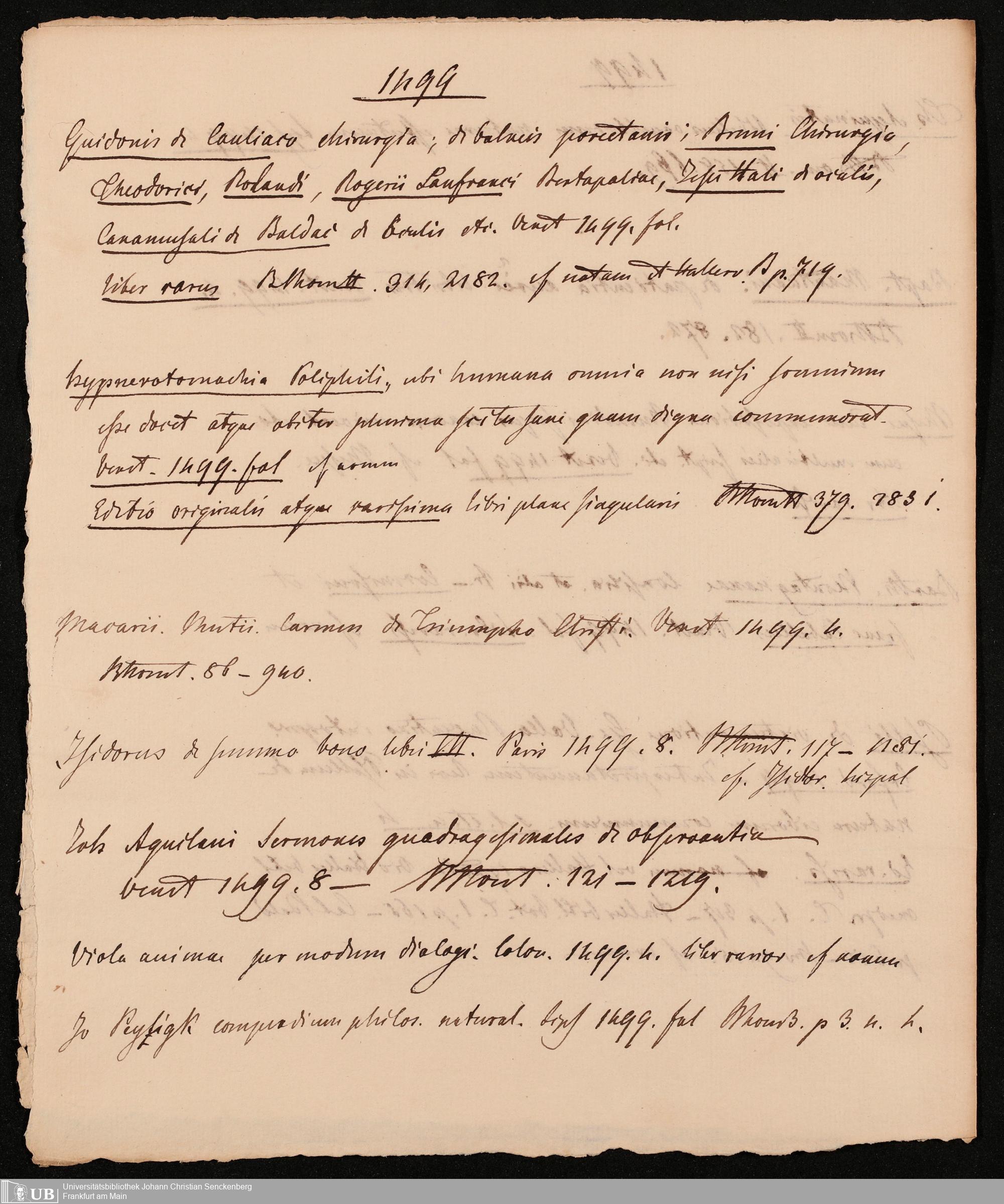 Ms. Ff. G. Kloß IV.4 - Materialien zu einer Bibliographie der Drucke. Chronologisch geordnet.