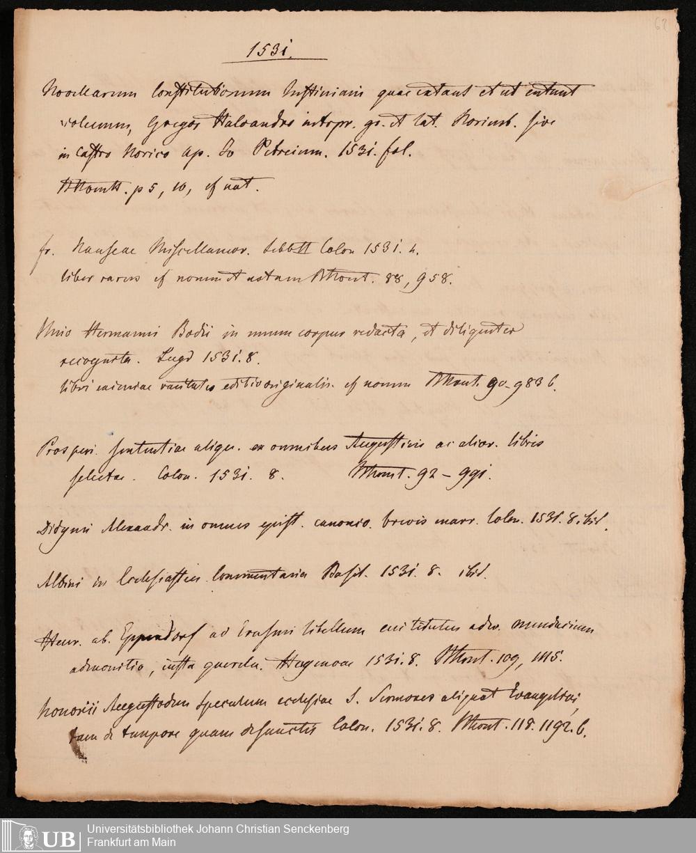 Ms. Ff. G. Kloß IV.4 - Materialien zu einer Bibliographie der Drucke. Chronologisch geordnet.