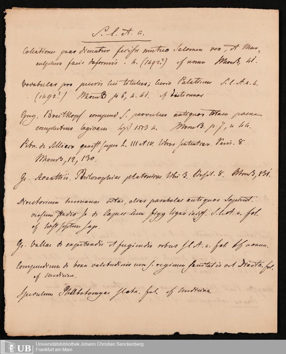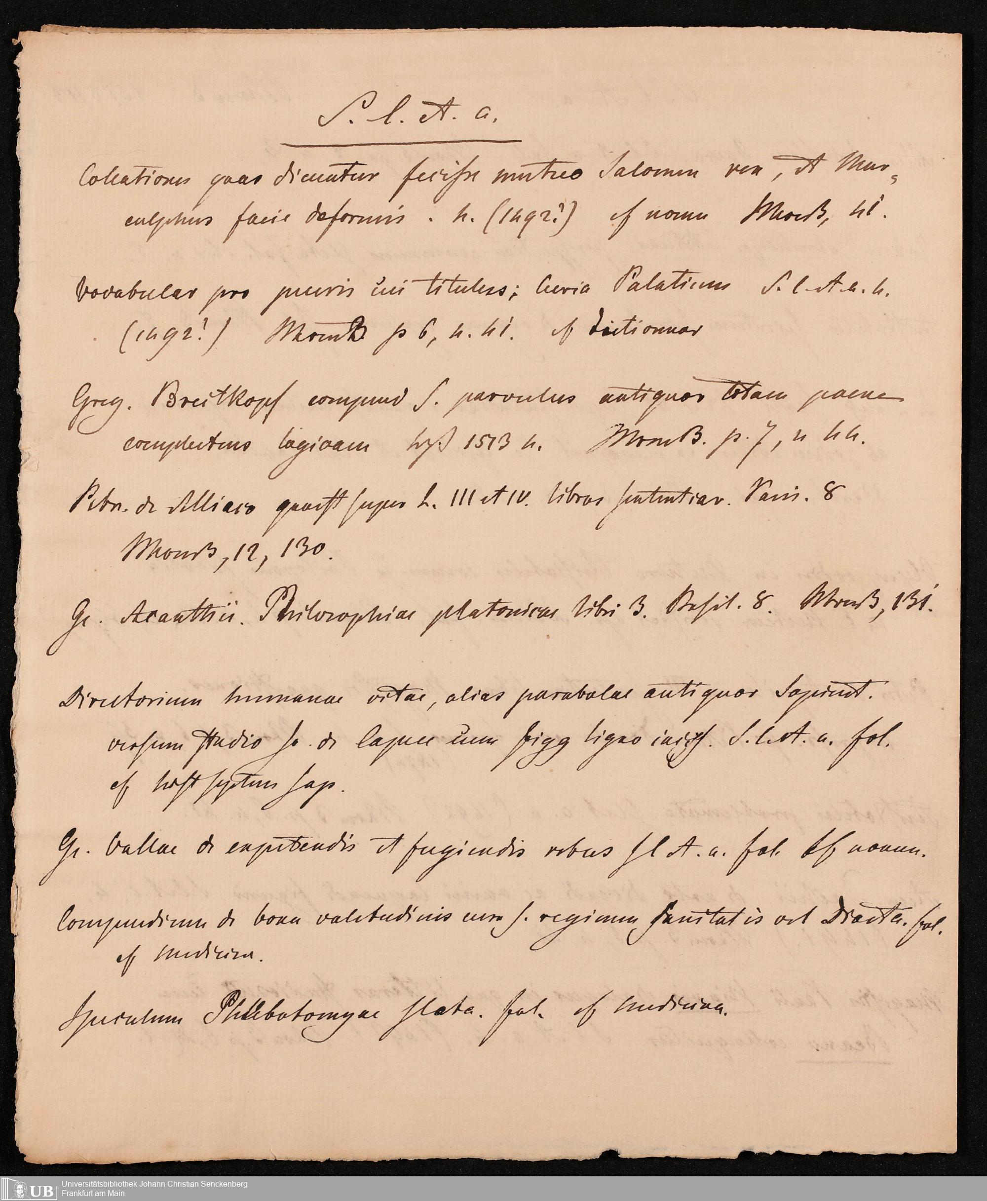 Ms. Ff. G. Kloß IV.4 - Materialien zu einer Bibliographie der Drucke. Chronologisch geordnet.