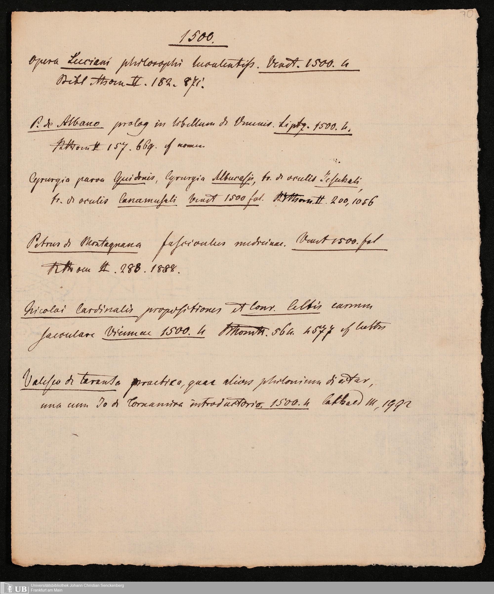 Ms. Ff. G. Kloß IV.4 - Materialien zu einer Bibliographie der Drucke. Chronologisch geordnet.