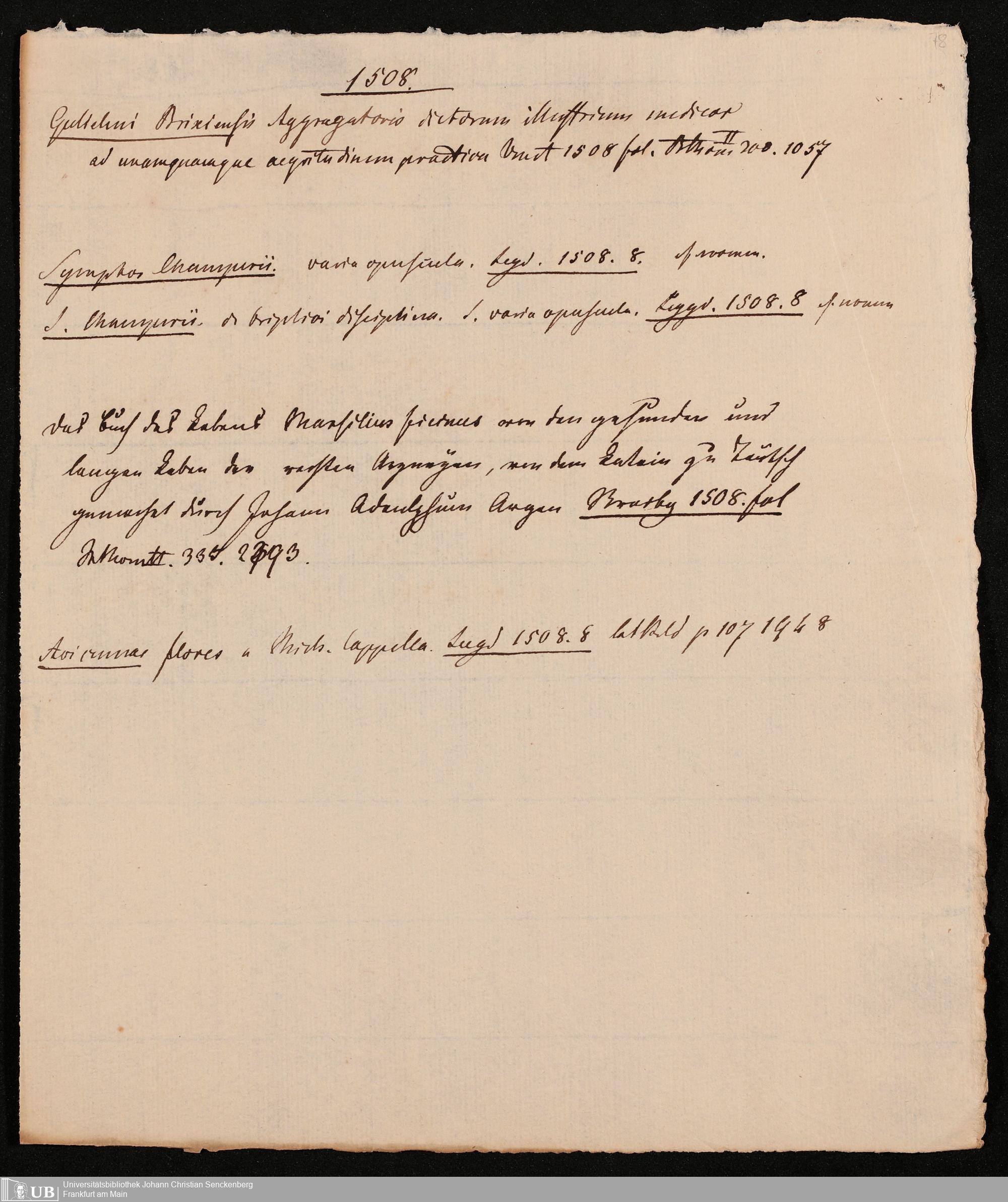 Ms. Ff. G. Kloß IV.4 - Materialien zu einer Bibliographie der Drucke. Chronologisch geordnet.