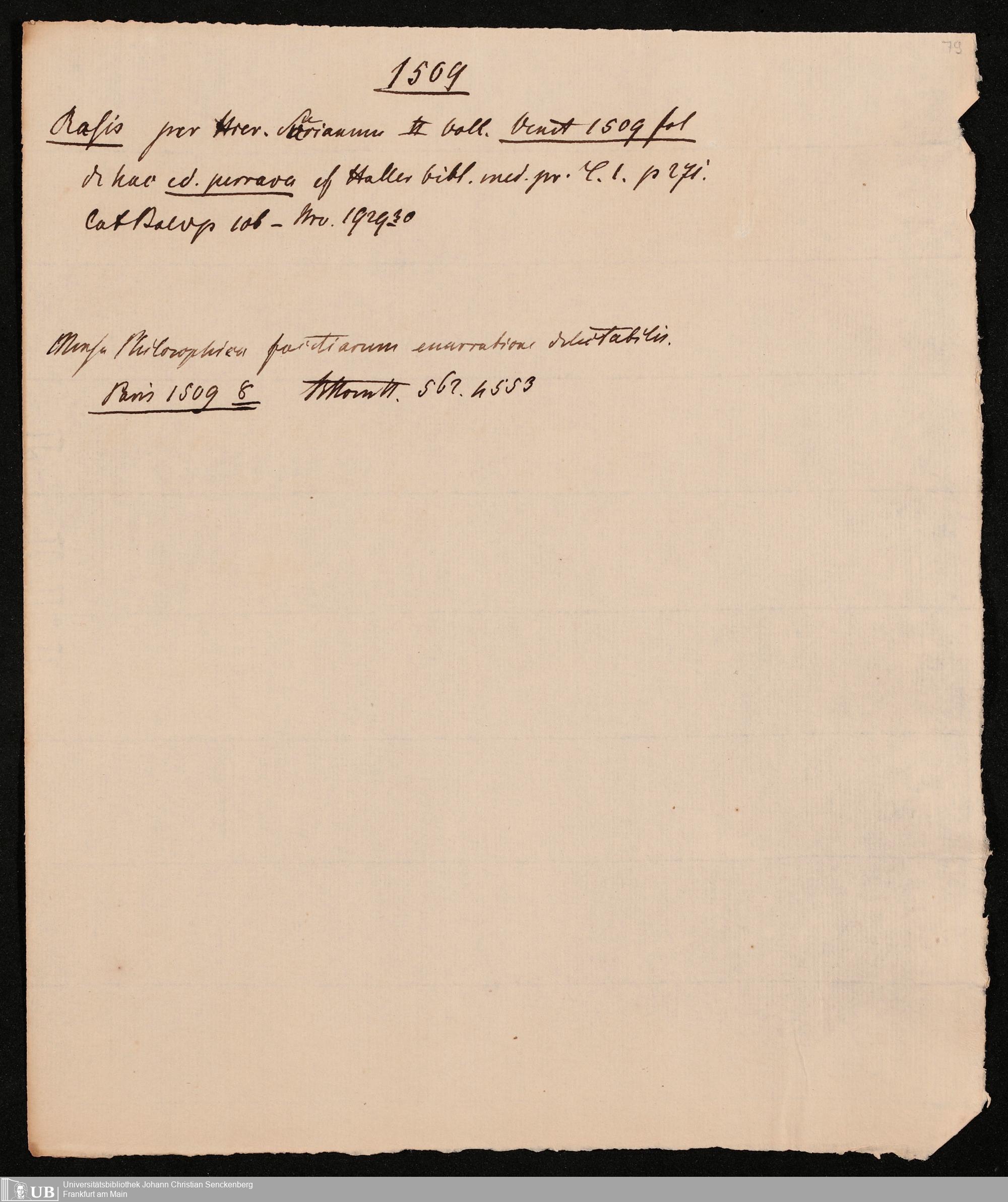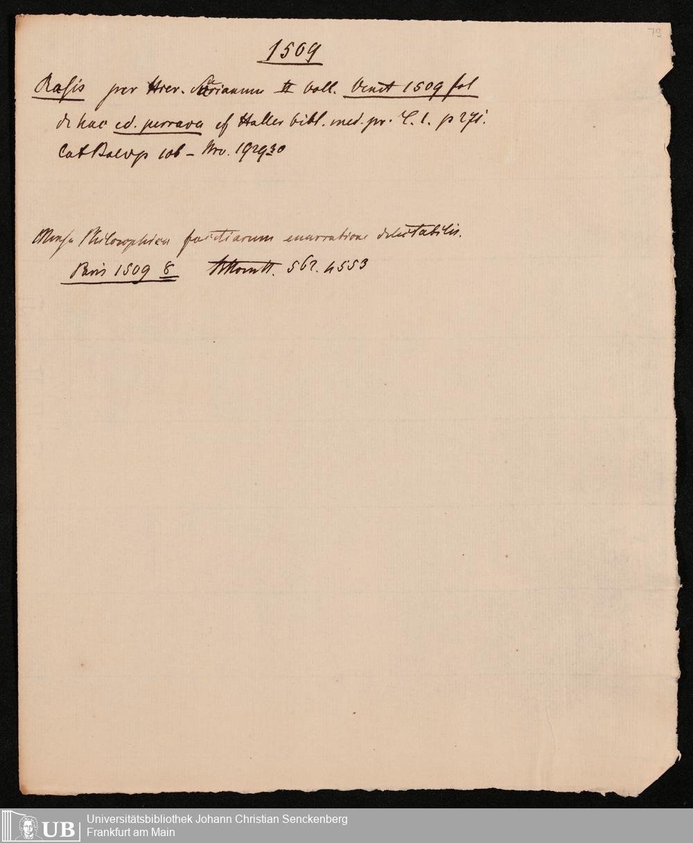Ms. Ff. G. Kloß IV.4 - Materialien zu einer Bibliographie der Drucke. Chronologisch geordnet.