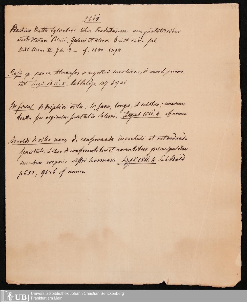 Ms. Ff. G. Kloß IV.4 - Materialien zu einer Bibliographie der Drucke. Chronologisch geordnet.