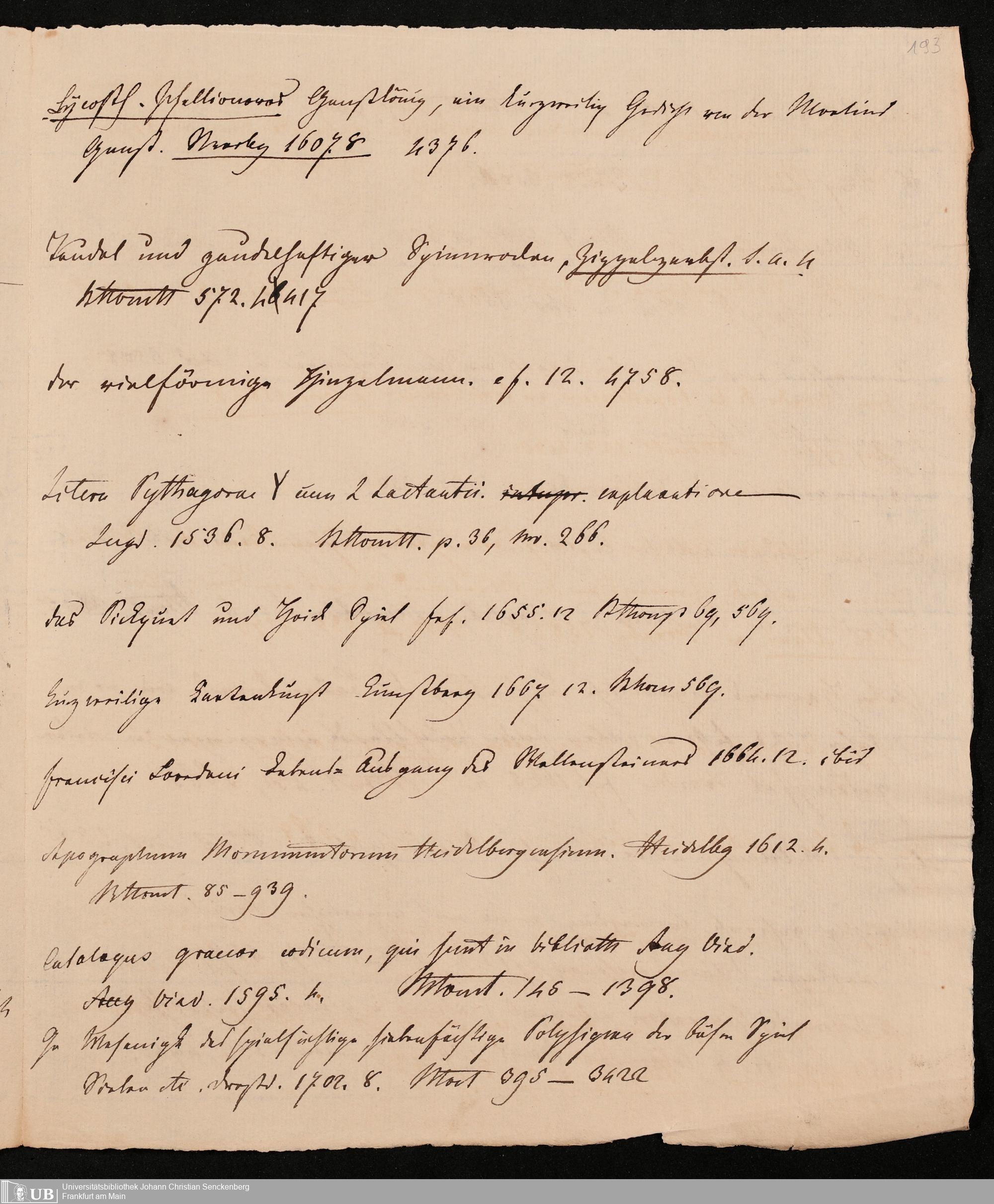 Ms. Ff. G. Kloß IV.4 - Materialien zu einer Bibliographie der Drucke. Chronologisch geordnet.