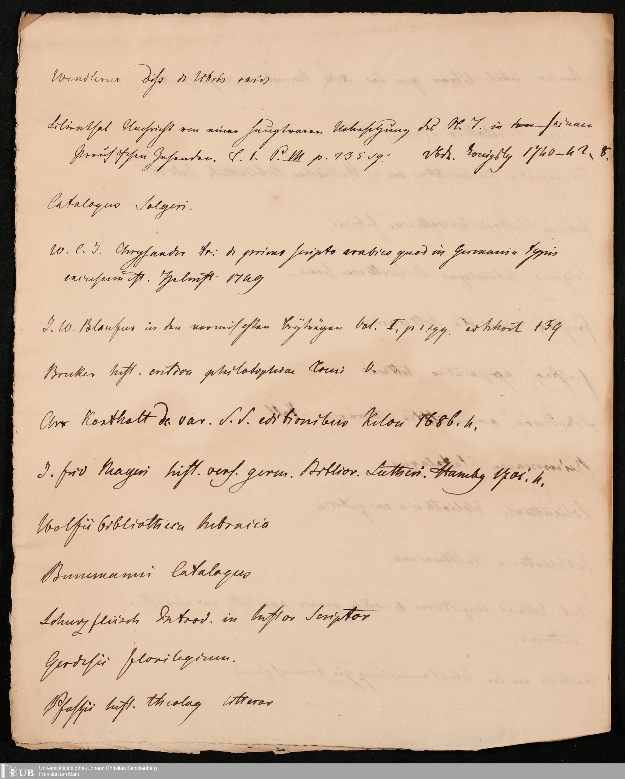 Ms. Ff. G. Kloß IV.4 - Materialien zu einer Bibliographie der Drucke. Chronologisch geordnet.