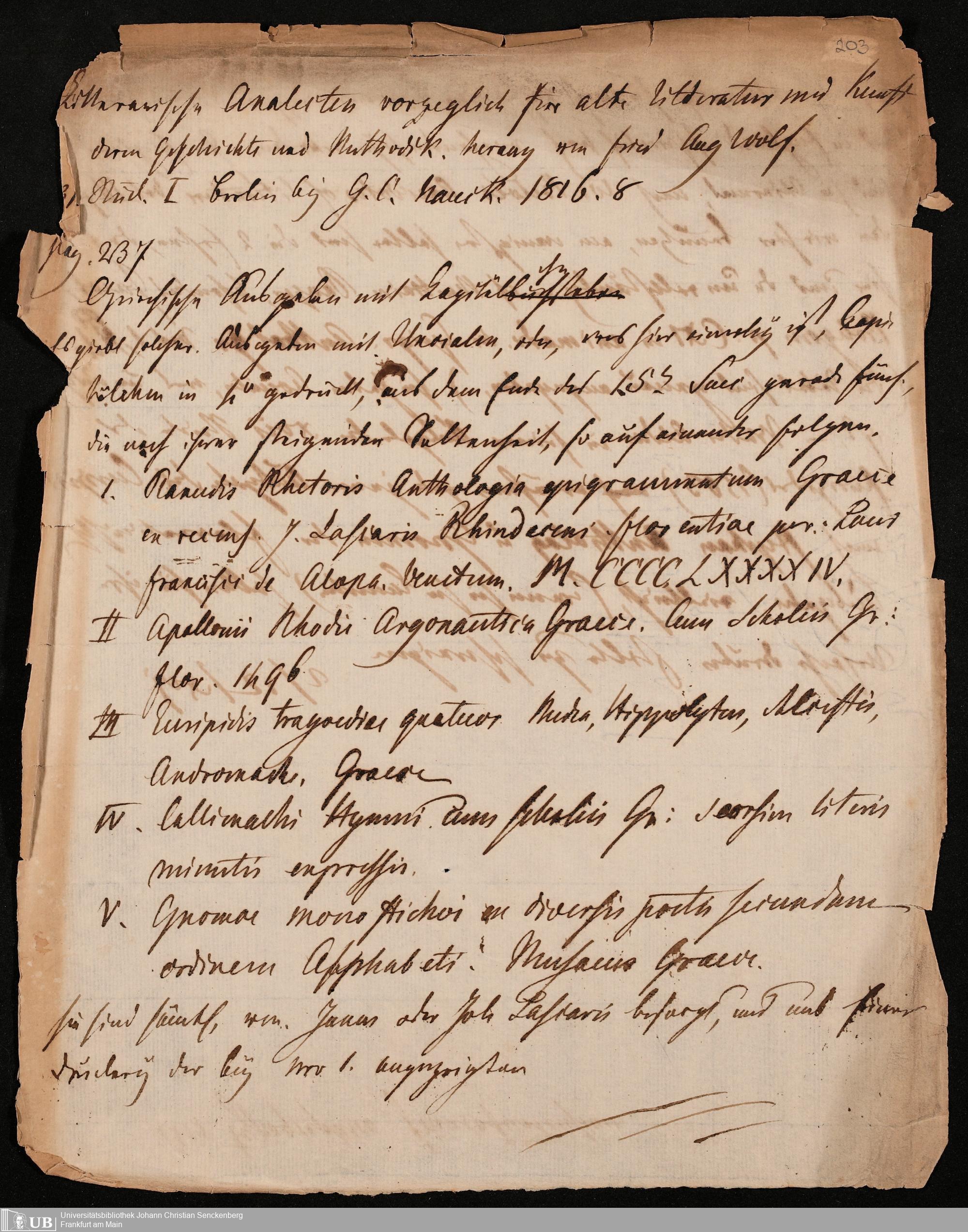 Ms. Ff. G. Kloß IV.4 - Materialien zu einer Bibliographie der Drucke. Chronologisch geordnet.