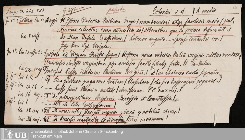 Ms. Ff. G. Kloß IV.8 - Bibliographische Materialien unterschiedlicher Art