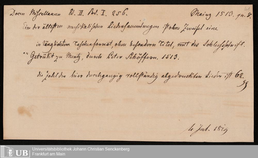 Ms. Ff. G. Kloß IV.8 - Bibliographische Materialien unterschiedlicher Art