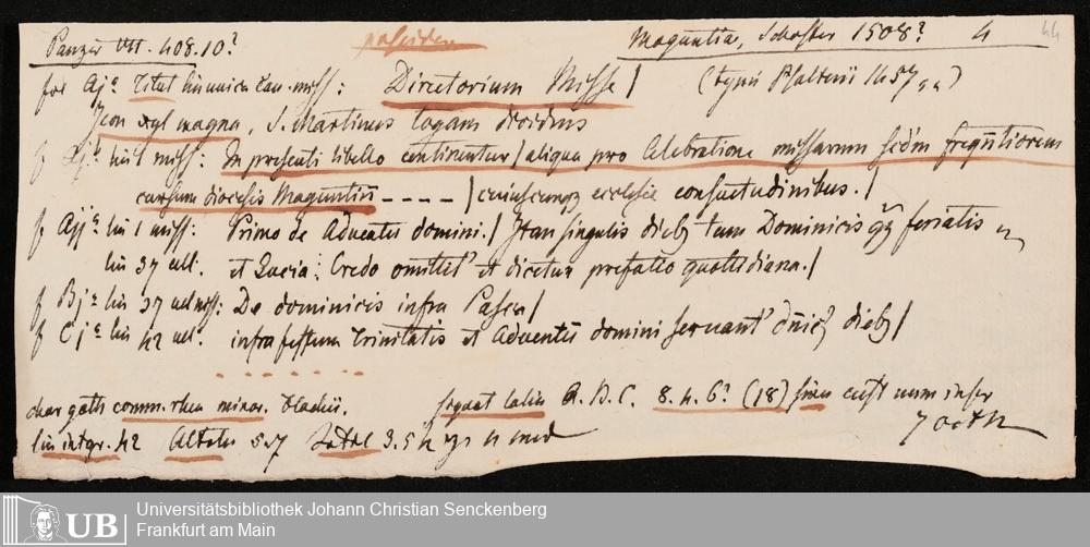 Ms. Ff. G. Kloß IV.8 - Bibliographische Materialien unterschiedlicher Art