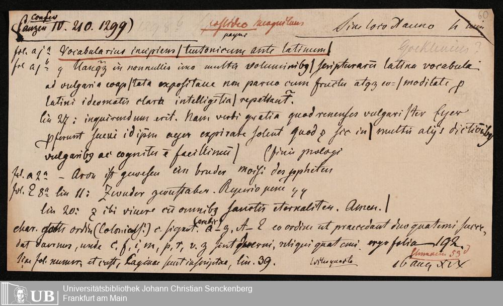 Ms. Ff. G. Kloß IV.8 - Bibliographische Materialien unterschiedlicher Art