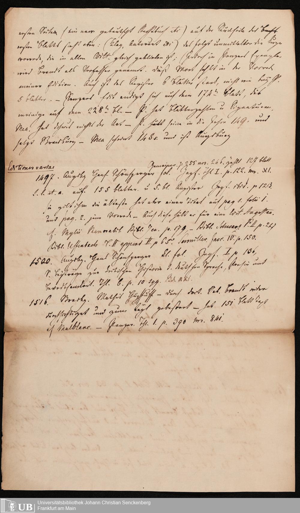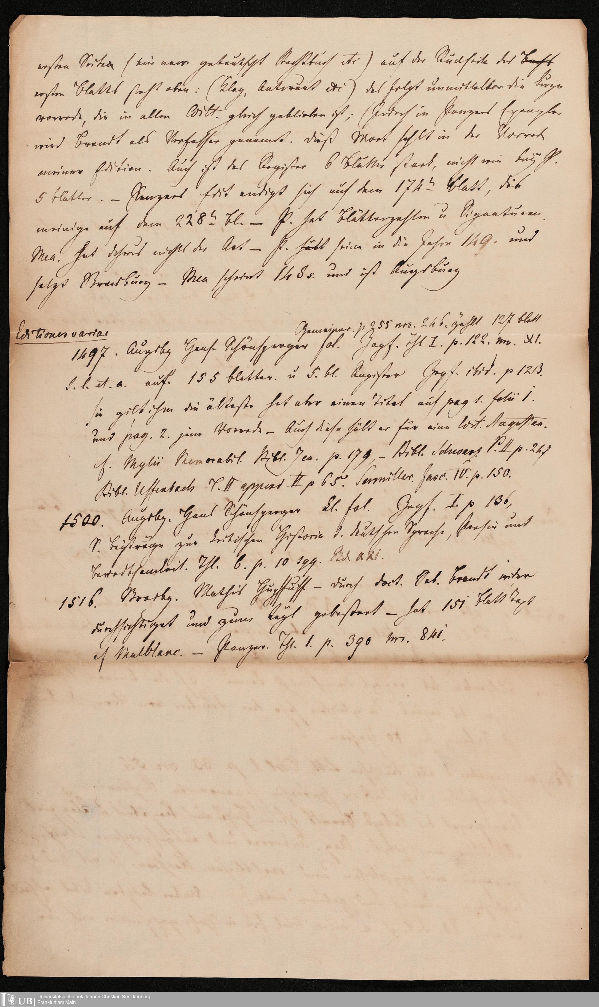 Ms. Ff. G. Kloß IV.8 - Bibliographische Materialien unterschiedlicher Art