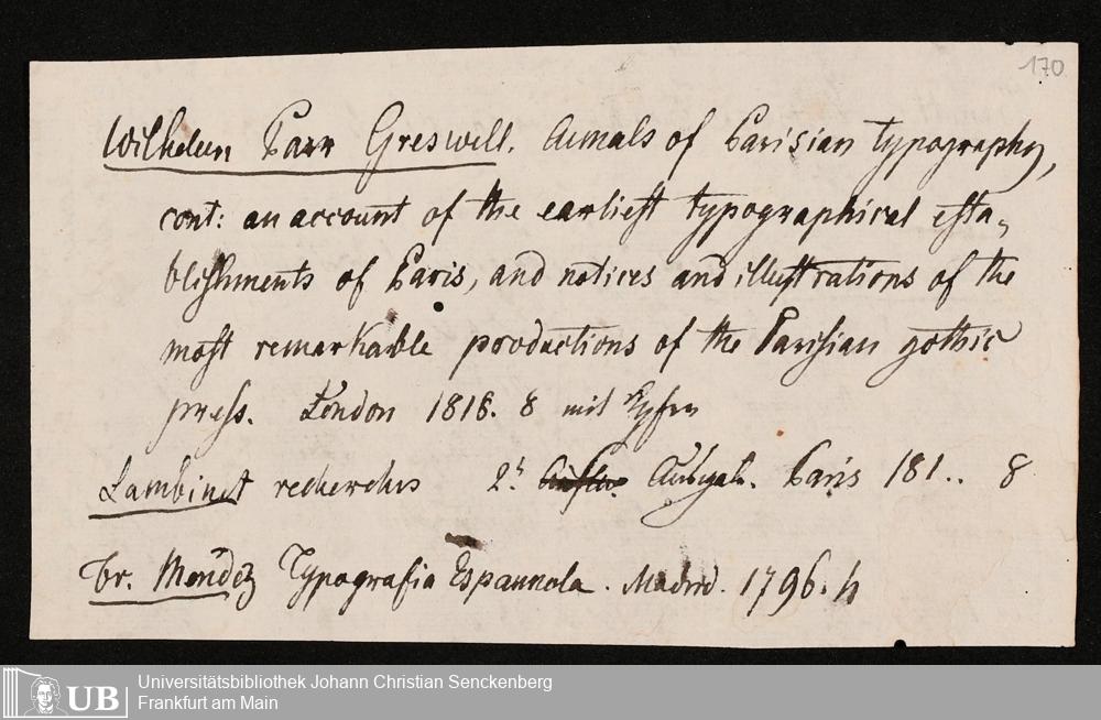 Ms. Ff. G. Kloß IV.8 - Bibliographische Materialien unterschiedlicher Art