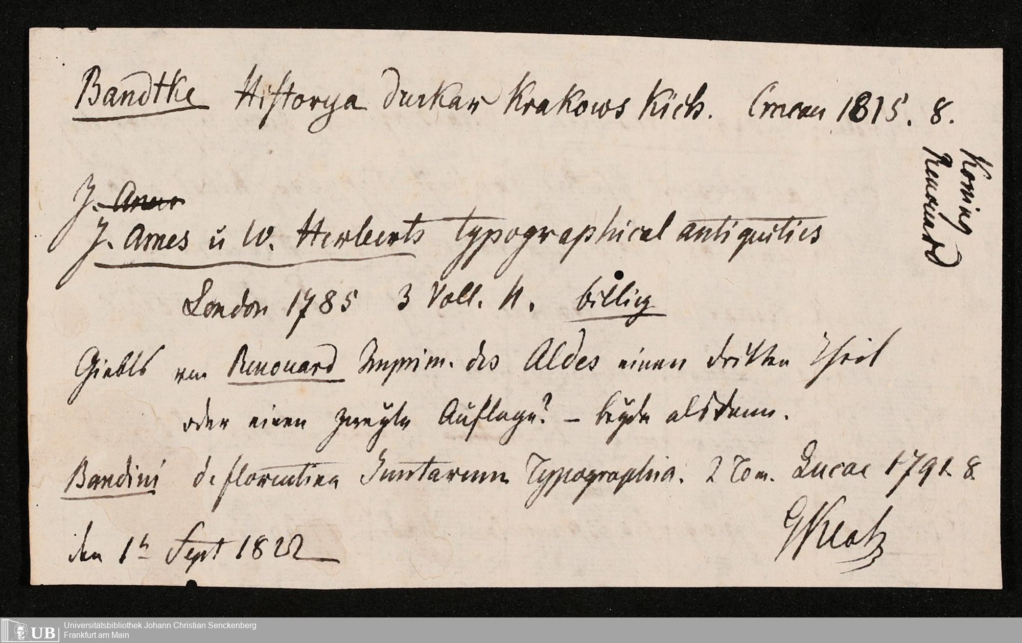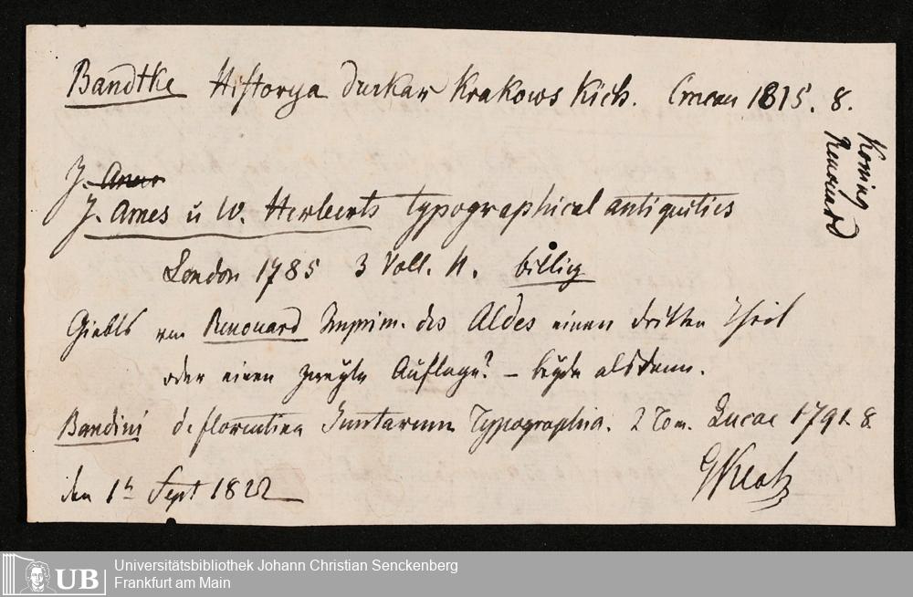 Ms. Ff. G. Kloß IV.8 - Bibliographische Materialien unterschiedlicher Art