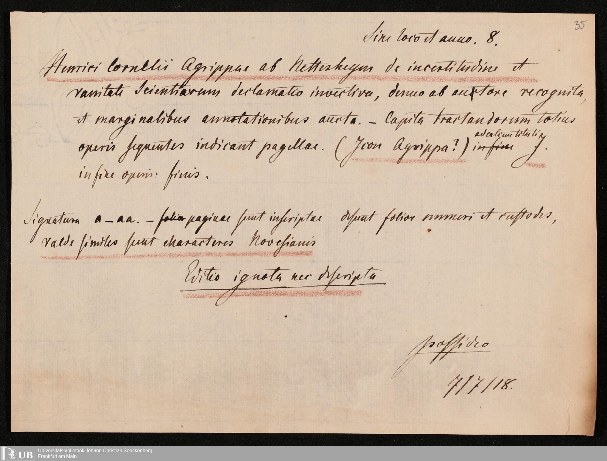 Ms. Ff. G. Kloß IV.1 - Materialien zu einer Bibliographie der Drucke des 15. und frühen 16. Jahrhunderts. Geordnet nach dem Alphabet der Autorennamen und Sachtitel. Reihe I