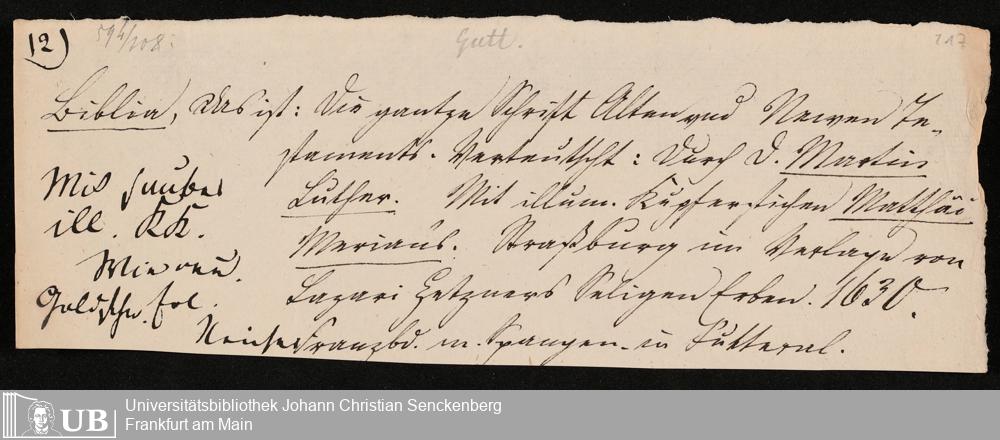 Ms. Ff. G. Kloß IV.8 - Bibliographische Materialien unterschiedlicher Art
