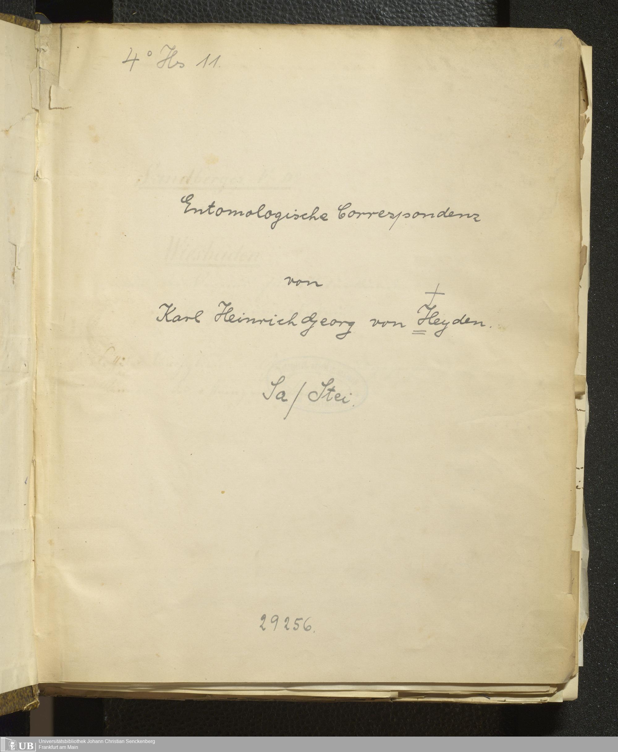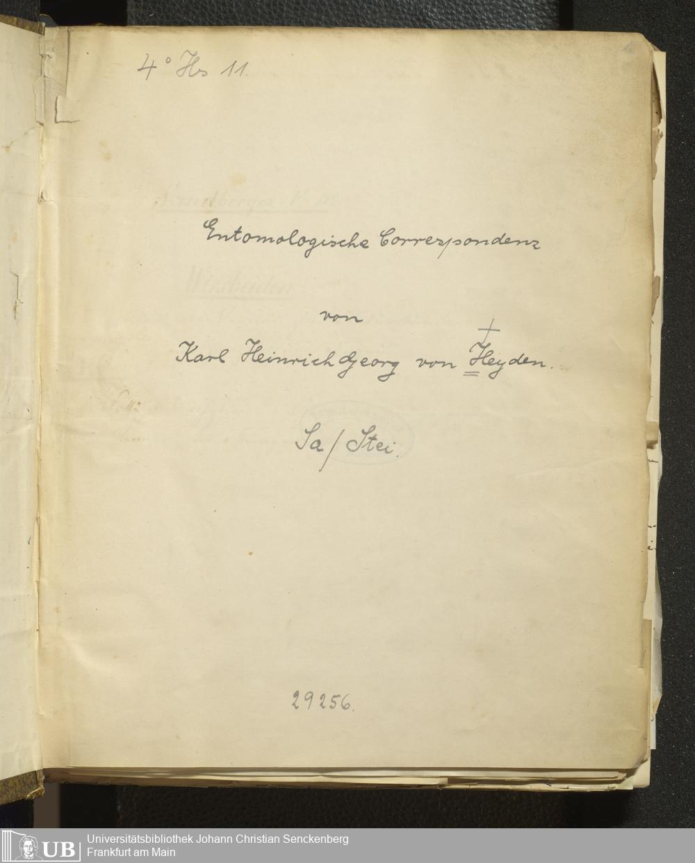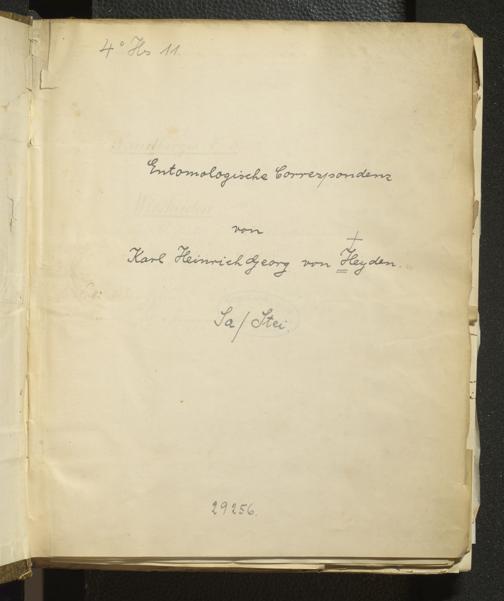 4˚ Hs 11 Bd. 6 - Entomologische Correspondenz von Karl Heinrich Georg von Heyden. Sa/Stei