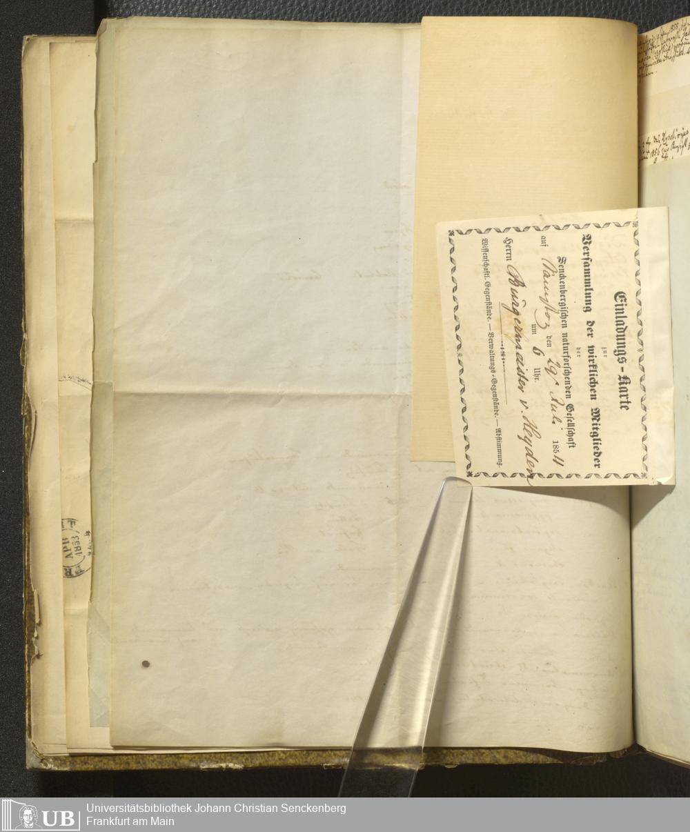 4˚ Hs 11 Bd. 6 - Entomologische Correspondenz von Karl Heinrich Georg von Heyden. Sa/Stei