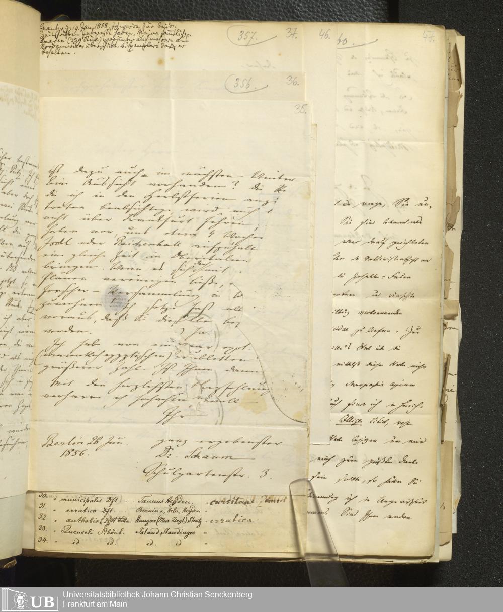 4˚ Hs 11 Bd. 6 - Entomologische Correspondenz von Karl Heinrich Georg von Heyden. Sa/Stei