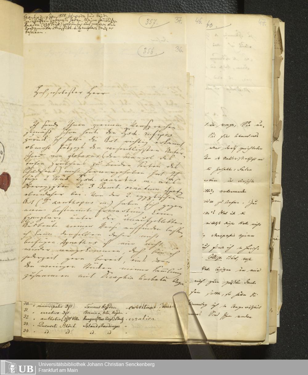4˚ Hs 11 Bd. 6 - Entomologische Correspondenz von Karl Heinrich Georg von Heyden. Sa/Stei