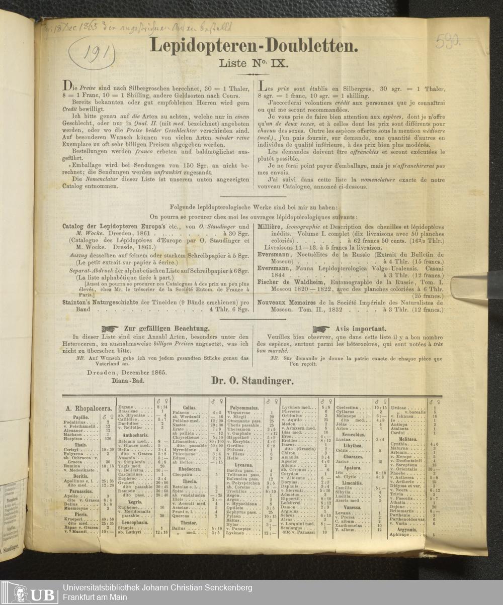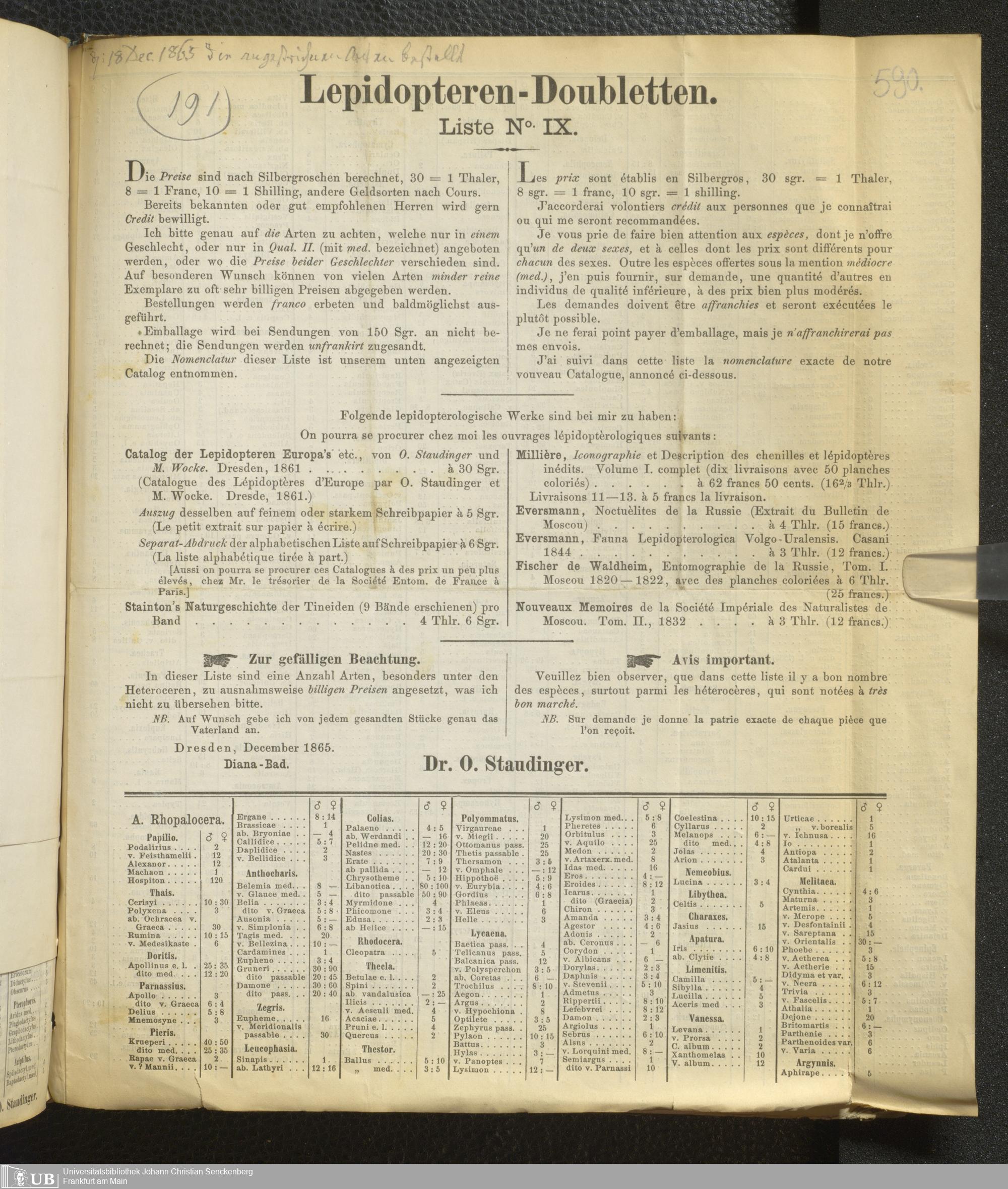 4˚ Hs 11 Bd. 6 - Entomologische Correspondenz von Karl Heinrich Georg von Heyden. Sa/Stei