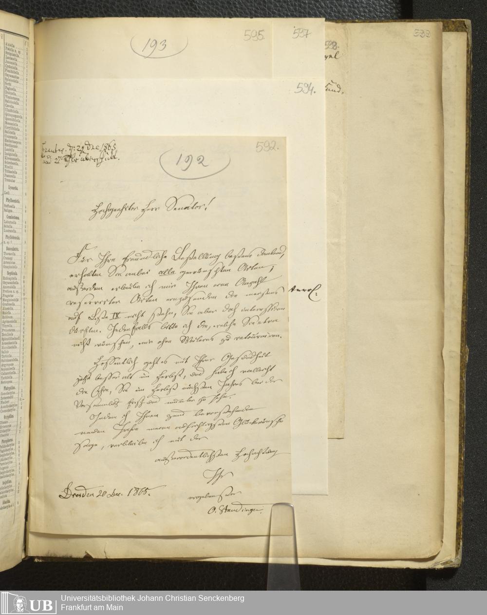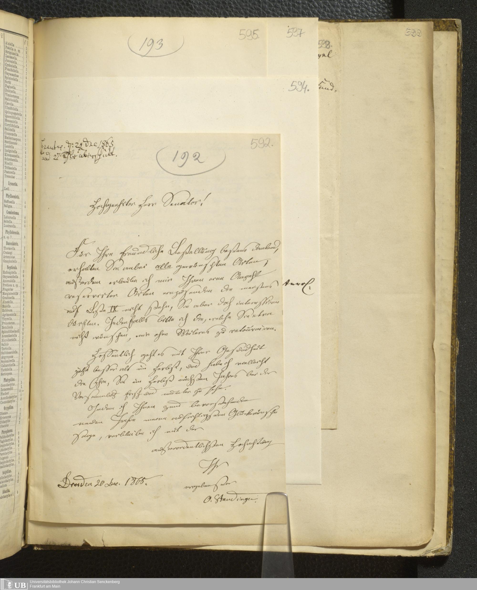 4˚ Hs 11 Bd. 6 - Entomologische Correspondenz von Karl Heinrich Georg von Heyden. Sa/Stei
