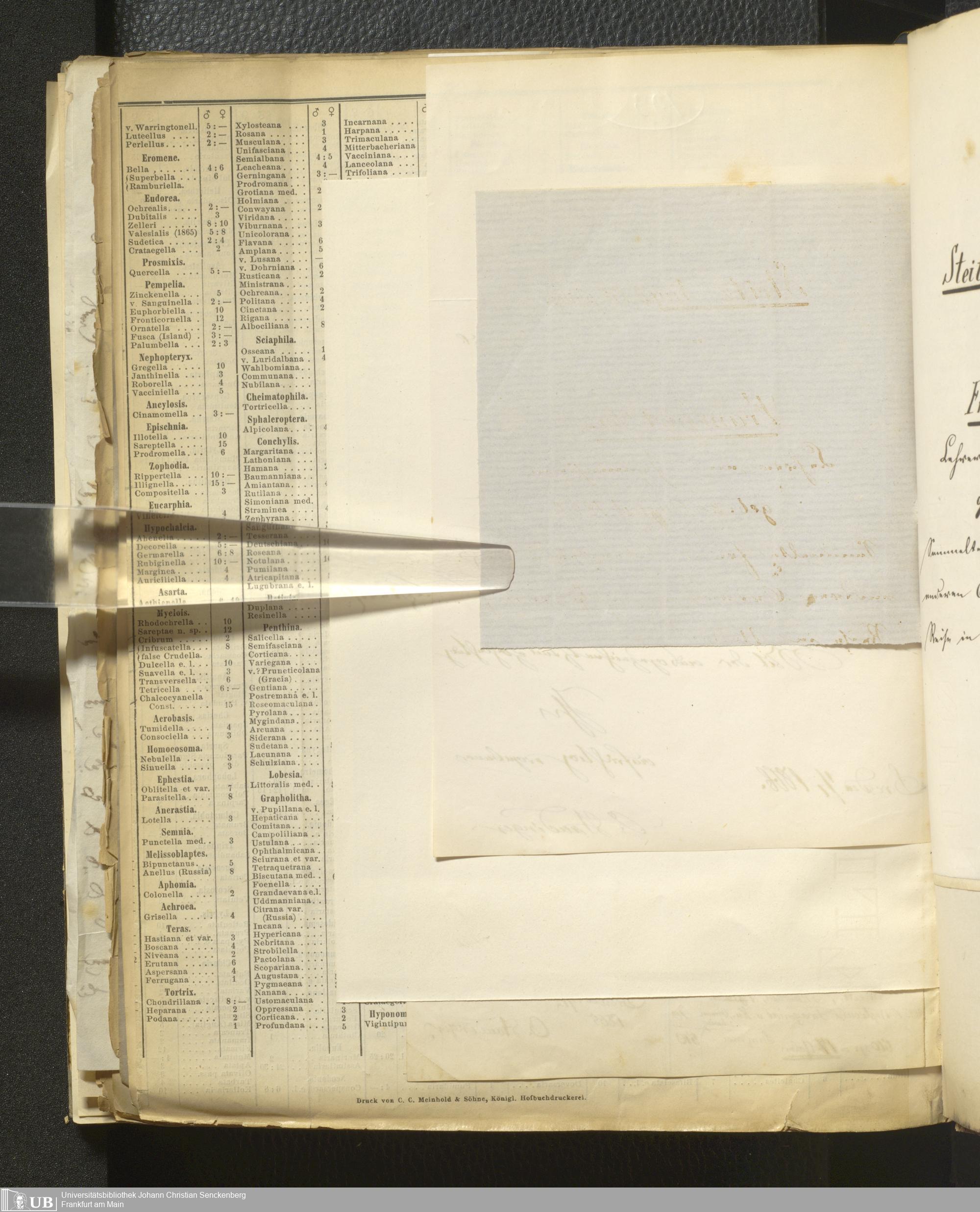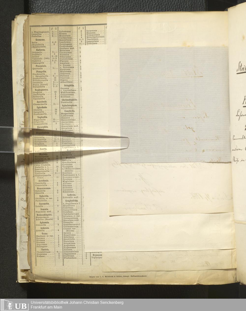 4˚ Hs 11 Bd. 6 - Entomologische Correspondenz von Karl Heinrich Georg von Heyden. Sa/Stei