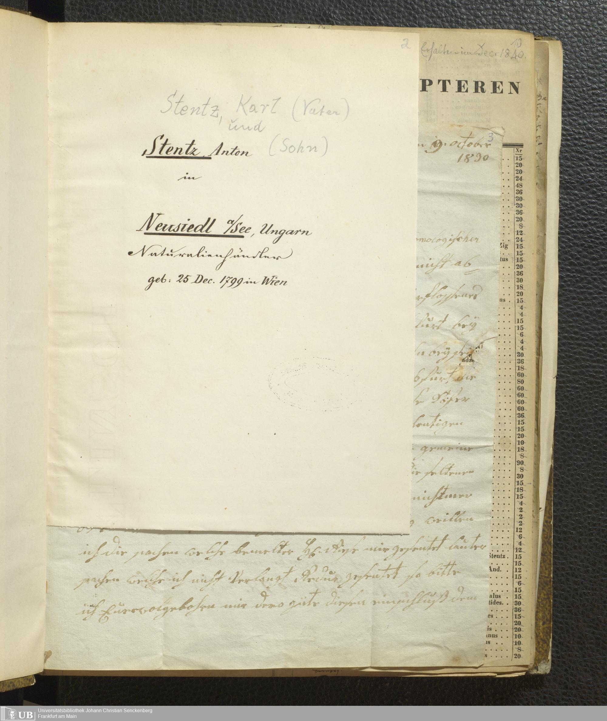 4˚ Hs 11 Bd. 7 - Entomologische Correspondenz von Karl Heinrich Georg von Heyden. Steu/Wal