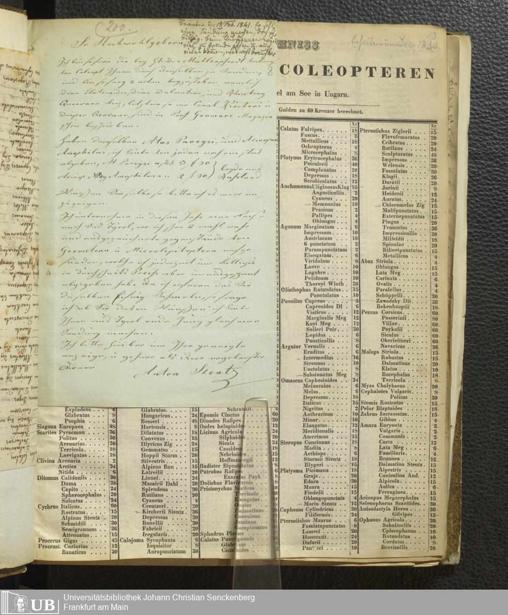 4˚ Hs 11 Bd. 7 - Entomologische Correspondenz von Karl Heinrich Georg von Heyden. Steu/Wal