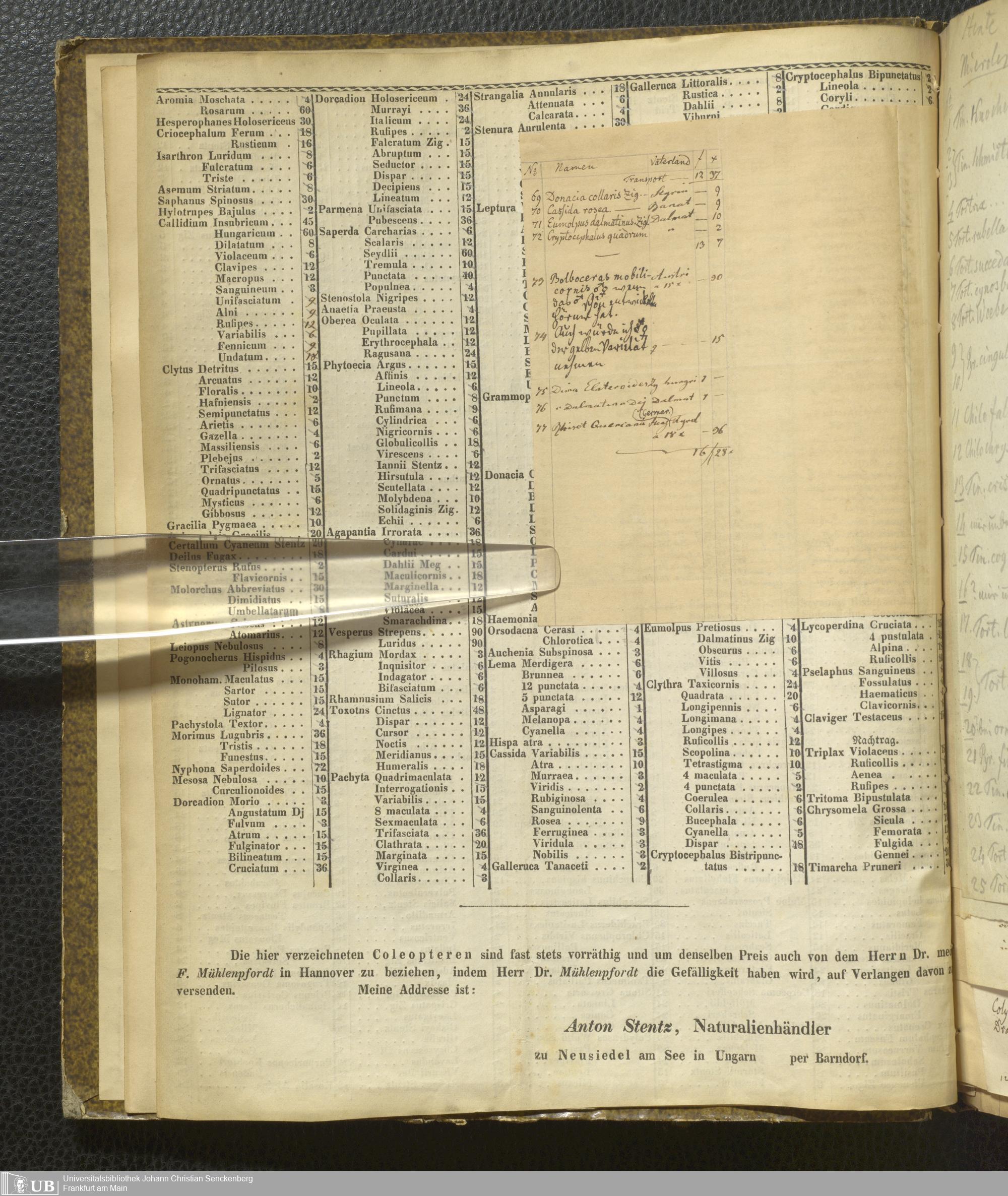 4˚ Hs 11 Bd. 7 - Entomologische Correspondenz von Karl Heinrich Georg von Heyden. Steu/Wal