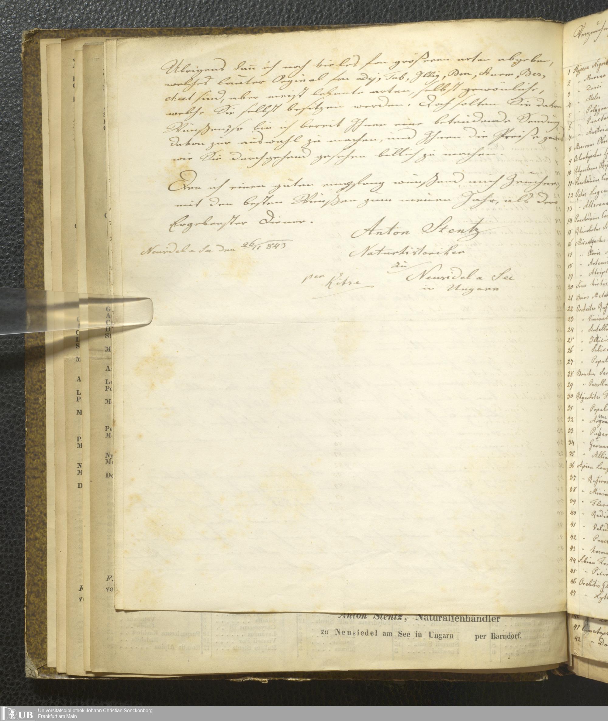 4˚ Hs 11 Bd. 7 - Entomologische Correspondenz von Karl Heinrich Georg von Heyden. Steu/Wal