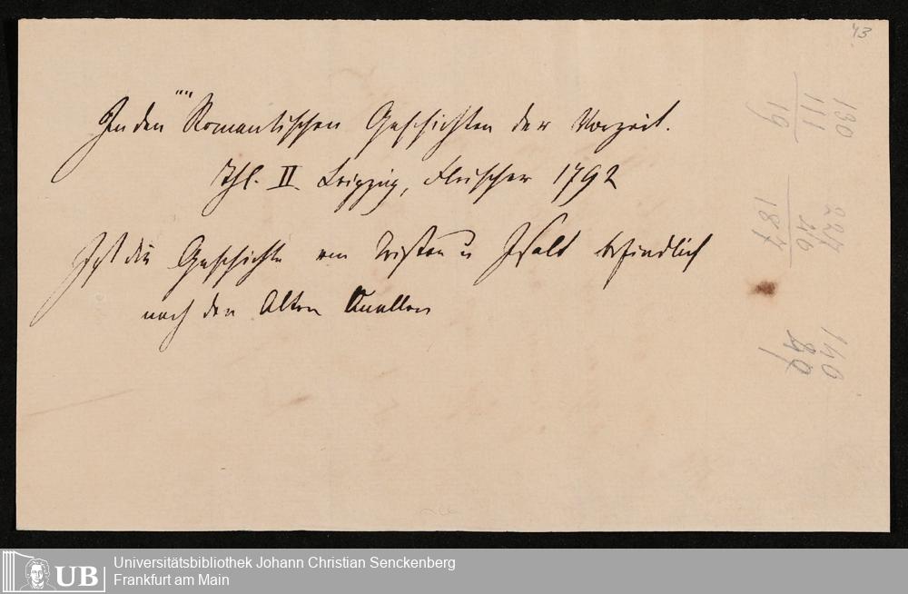 Ms. Ff. G. Kloß V.9 - Vortragsmanuskripte und weitere Manuskripte, unter anderem über Rollenhagen, Reinecke Fuchs, Fischart und altdeutsche Heldensagen