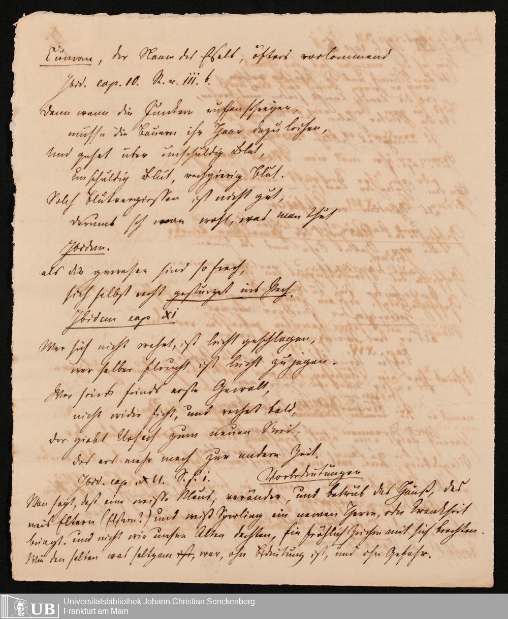Ms. Ff. G. Kloß V.9 - Vortragsmanuskripte und weitere Manuskripte, unter anderem über Rollenhagen, Reinecke Fuchs, Fischart und altdeutsche Heldensagen