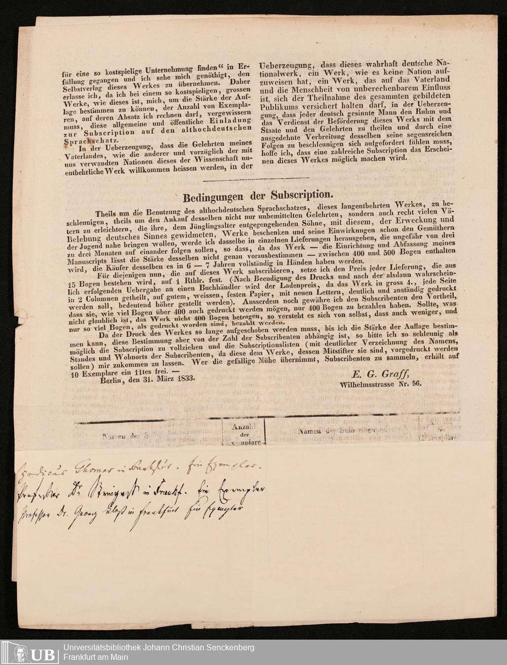 Nachlass Georg Kloss