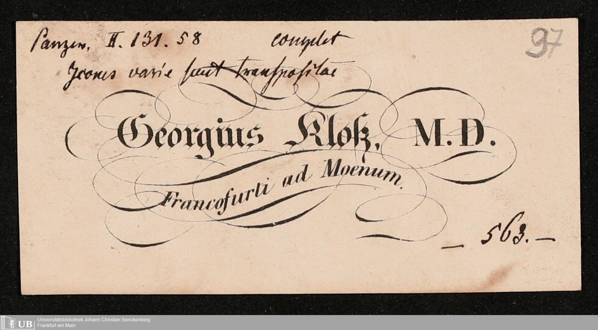 Nachlass Johann Christian Senckenberg