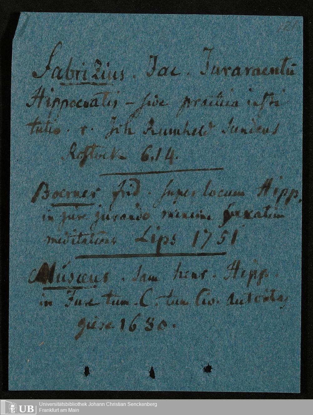 Nachlass Johann Christian Senckenberg