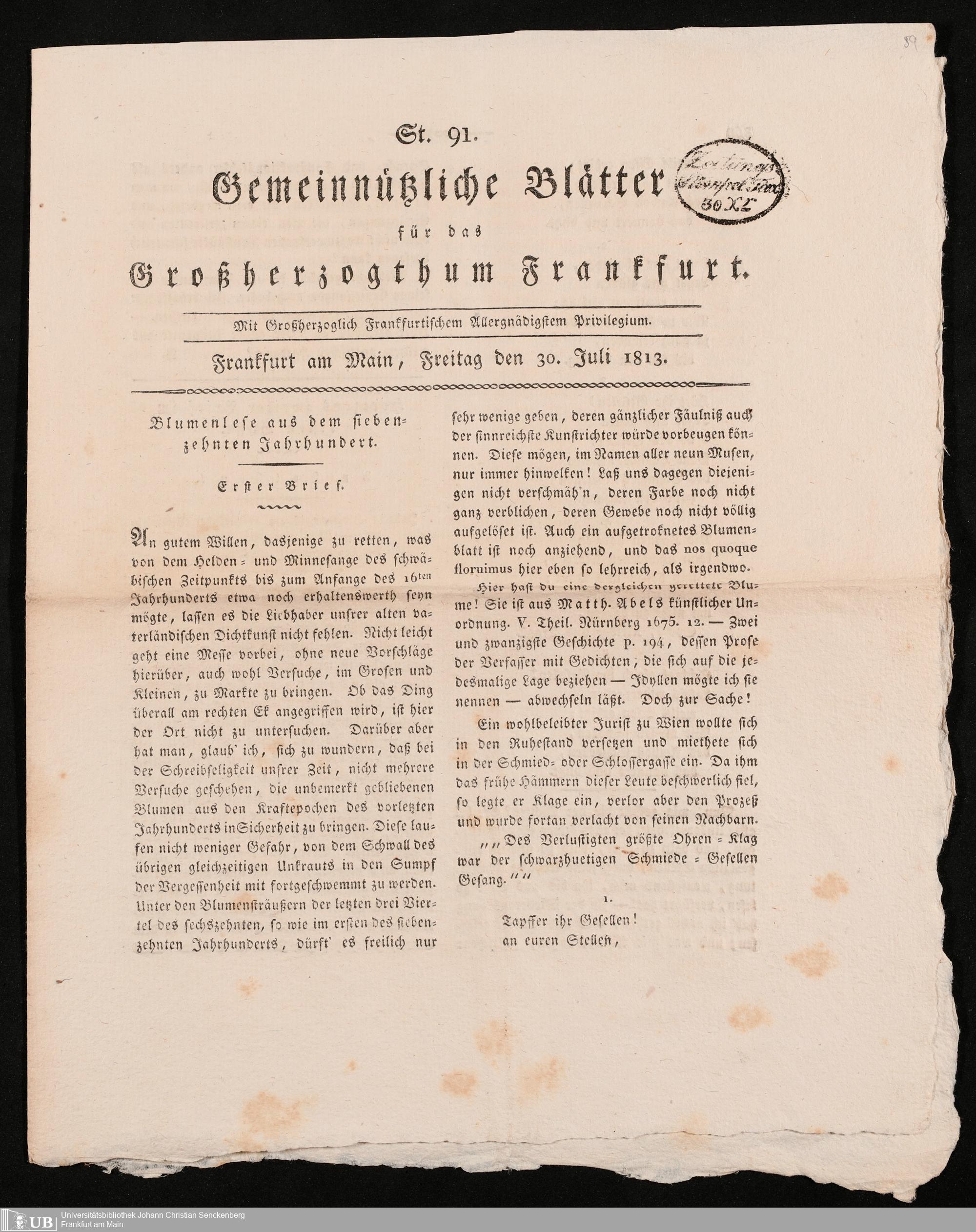 Ohne Ort 1813-07-30/1843-10-18