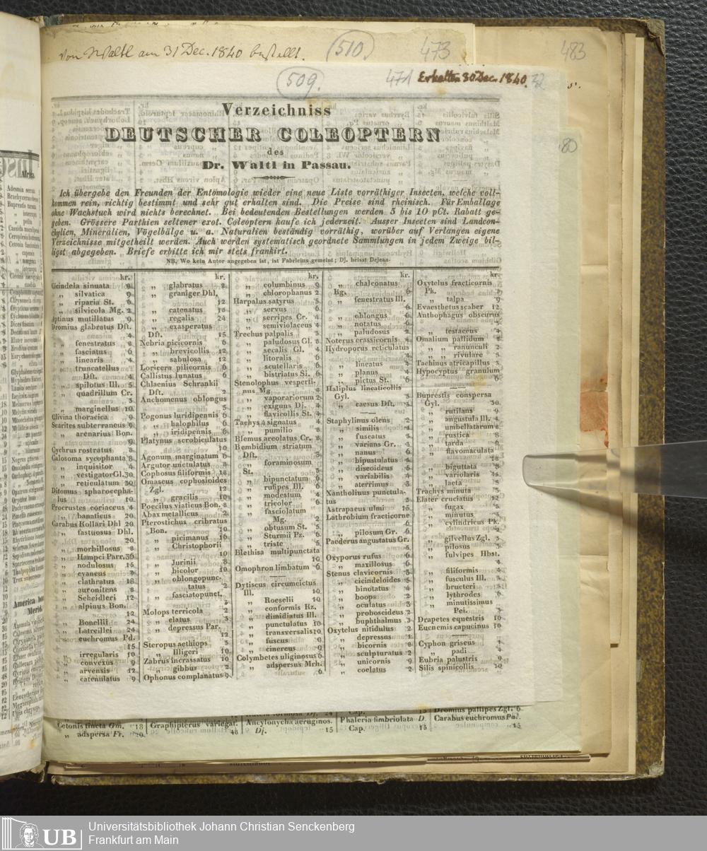 4˚ Hs 11 Bd. 7 - Entomologische Correspondenz von Karl Heinrich Georg von Heyden. Steu/Wal