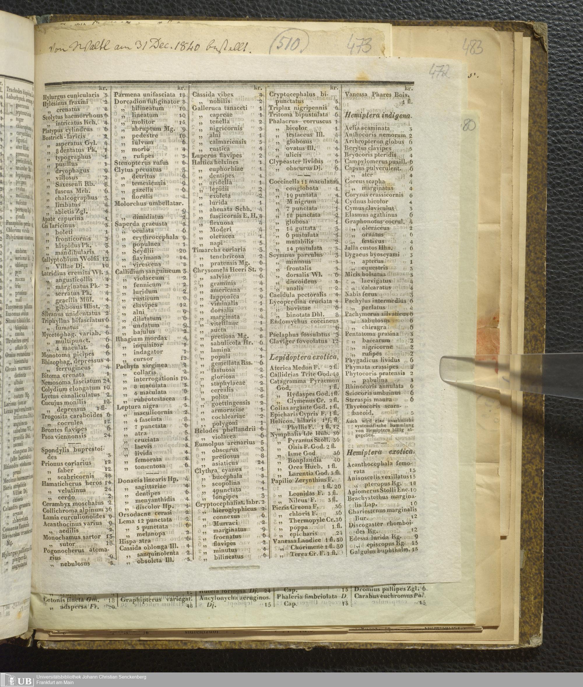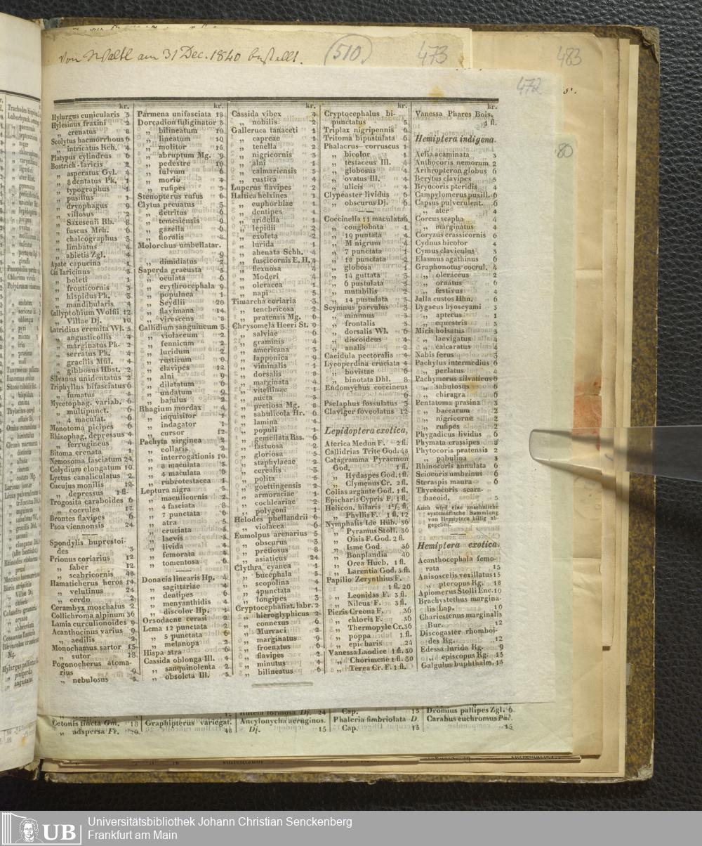 4˚ Hs 11 Bd. 7 - Entomologische Correspondenz von Karl Heinrich Georg von Heyden. Steu/Wal