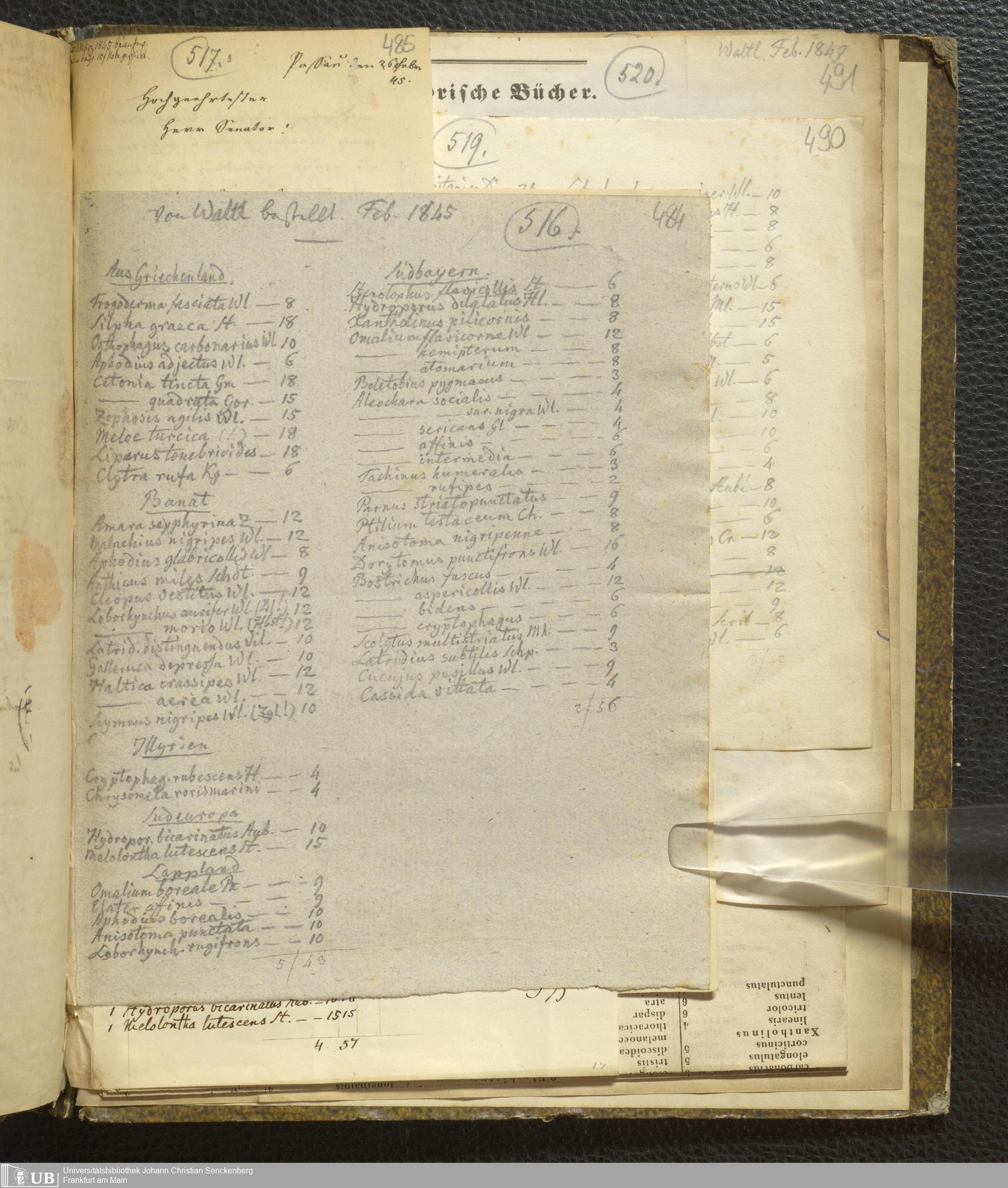 4˚ Hs 11 Bd. 7 - Entomologische Correspondenz von Karl Heinrich Georg von Heyden. Steu/Wal