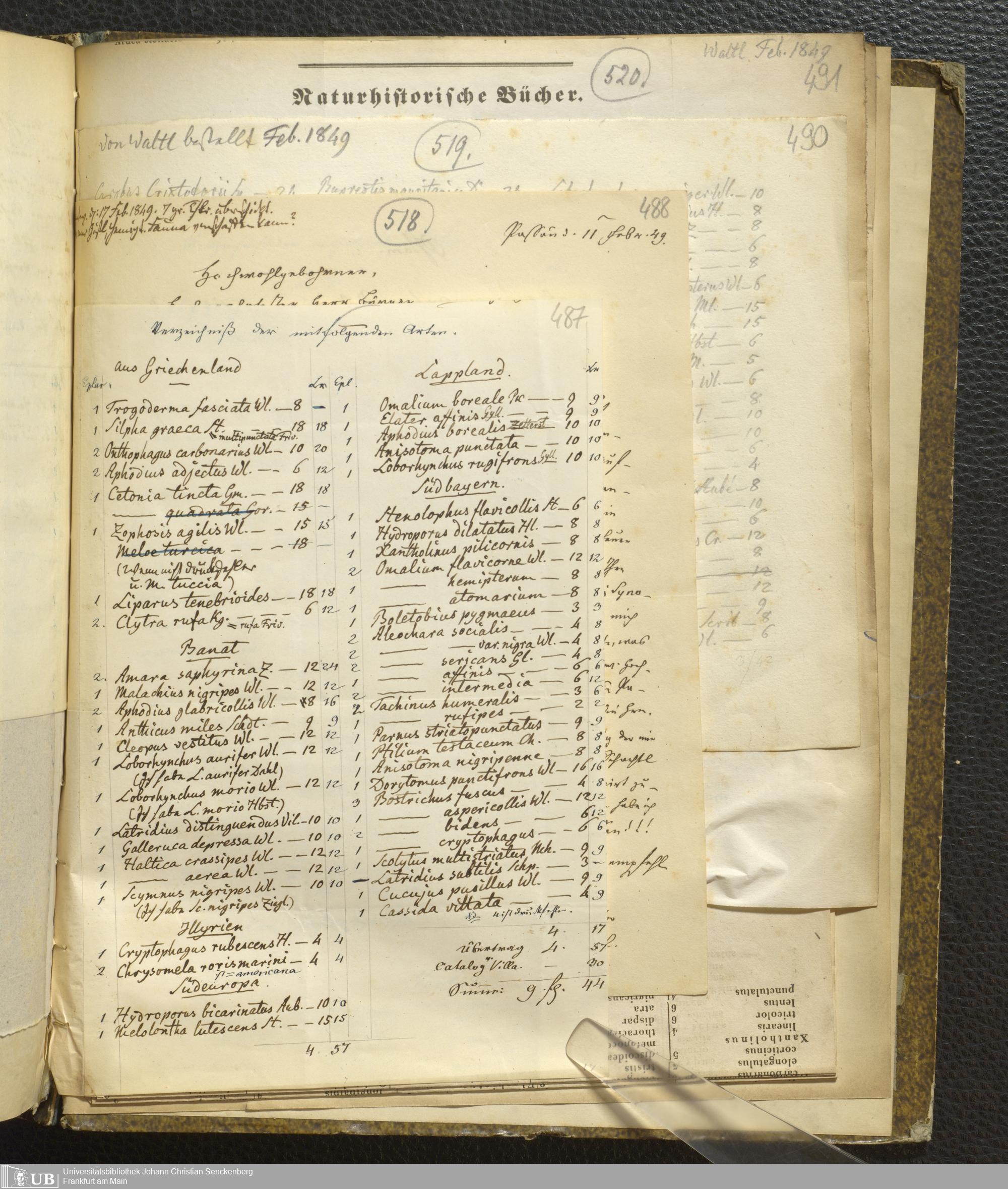 4˚ Hs 11 Bd. 7 - Entomologische Correspondenz von Karl Heinrich Georg von Heyden. Steu/Wal