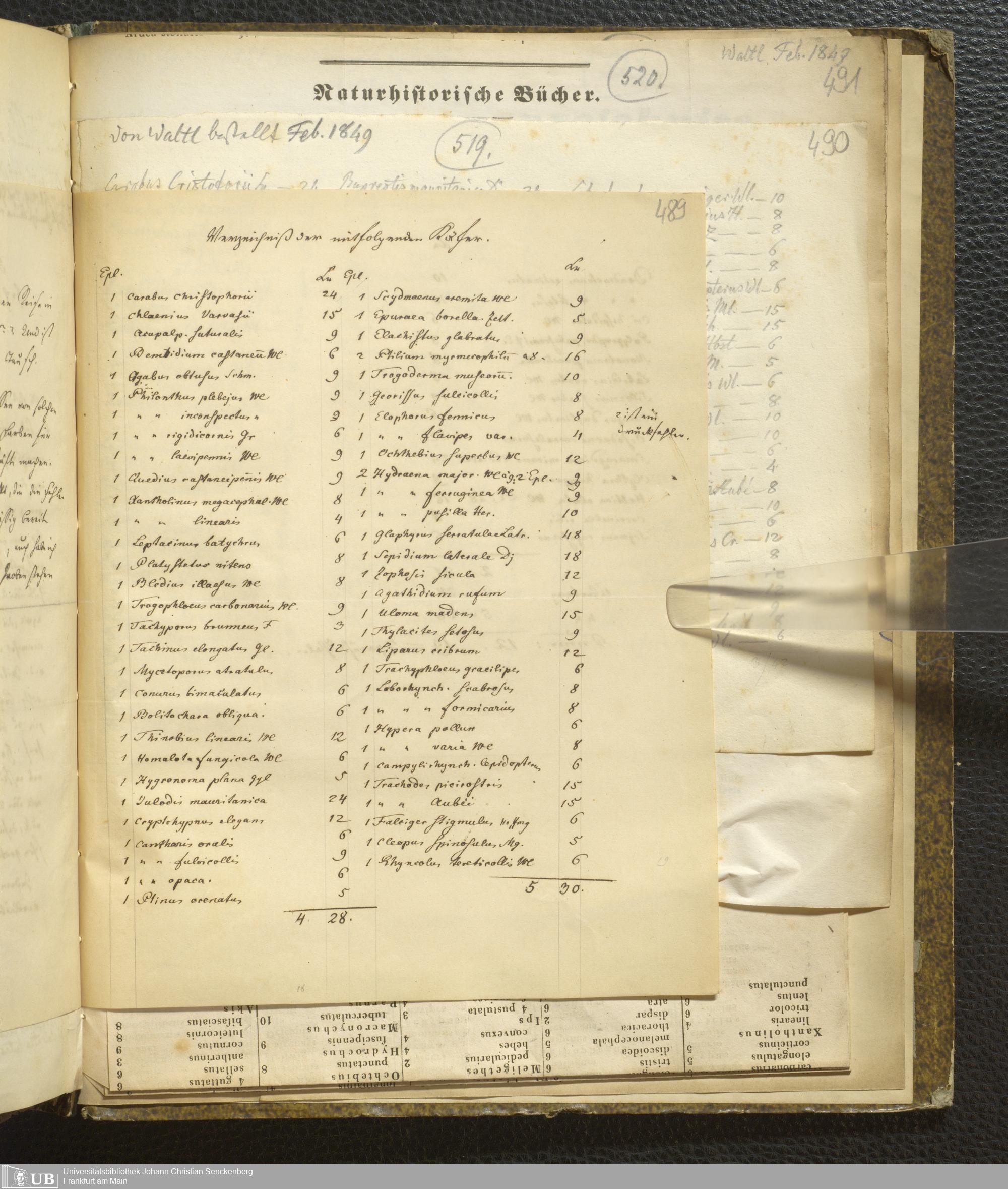 4˚ Hs 11 Bd. 7 - Entomologische Correspondenz von Karl Heinrich Georg von Heyden. Steu/Wal