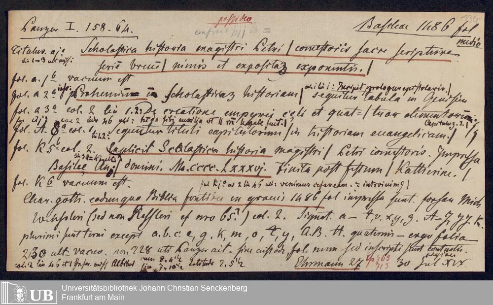 Ms. Ff. G. Kloß V.1.1 - Materialien zu einem Katalog der Drucker des 15. und frühen 16. Jahrhunderts. Nach dem Alphabet der Druckorte, innerhalb nach dem Drucker