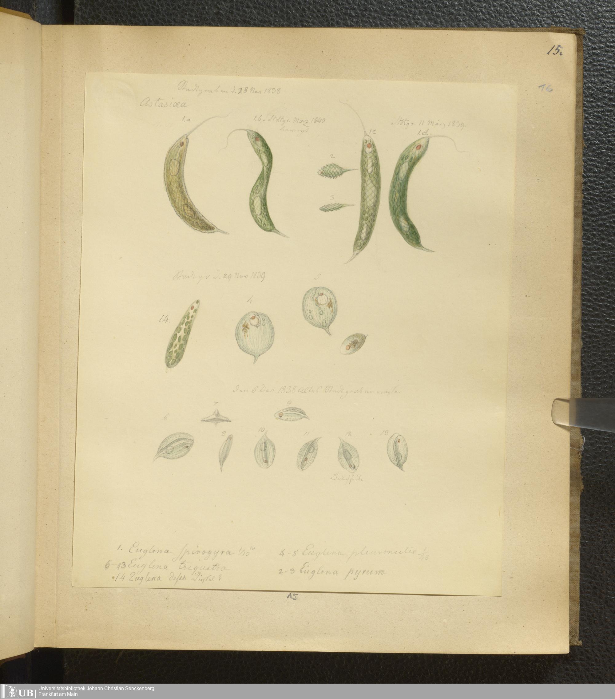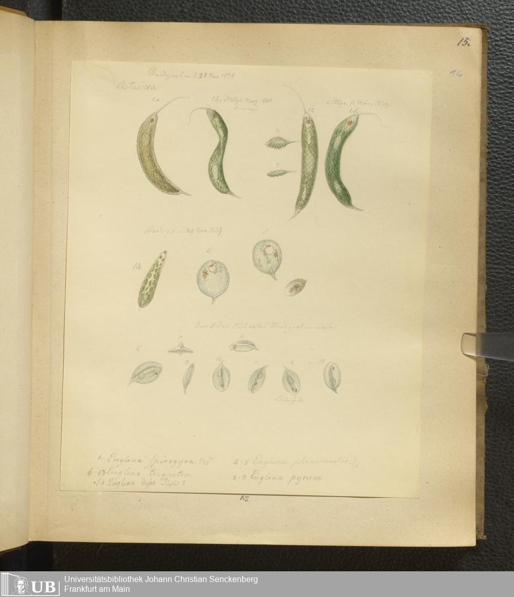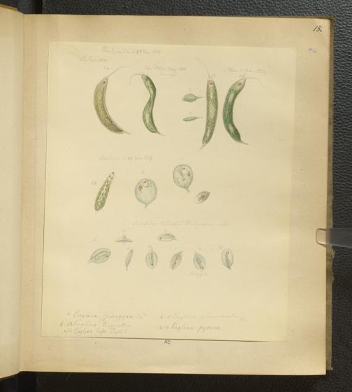 Soe 65 - Infusorien : beobachtet und gezeichnet, nach Ehrenberg bestim[m]t und geordnet von Dr. W. Soemmerring. Süßwasser Polypen, Entomostraca, Planarien u.a.m. Meistens in den Jahren 1838, 1839 u. 1840 gesam[m]elt u. gemalt