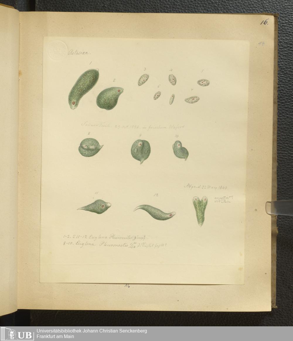 Soe 65 - Infusorien : beobachtet und gezeichnet, nach Ehrenberg bestim[m]t und geordnet von Dr. W. Soemmerring. Süßwasser Polypen, Entomostraca, Planarien u.a.m. Meistens in den Jahren 1838, 1839 u. 1840 gesam[m]elt u. gemalt
