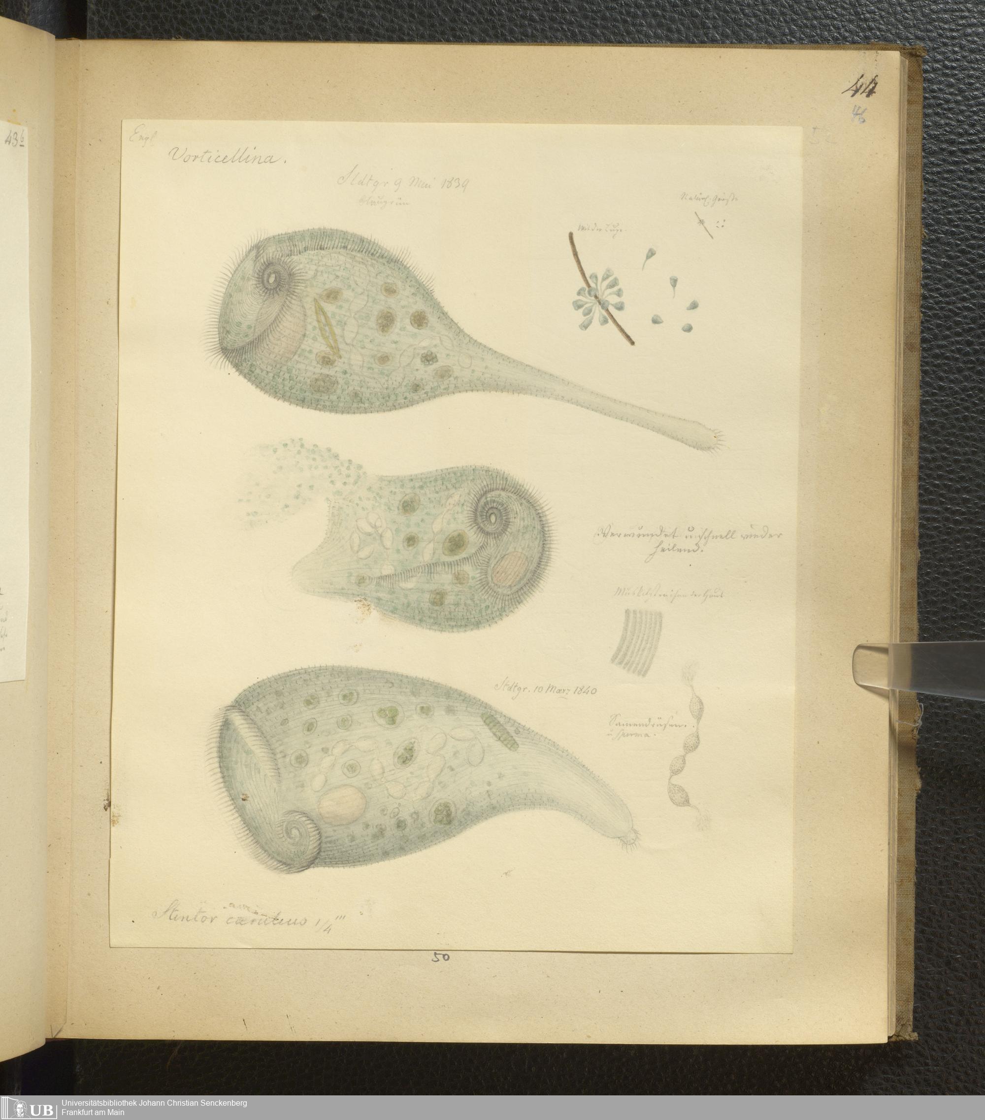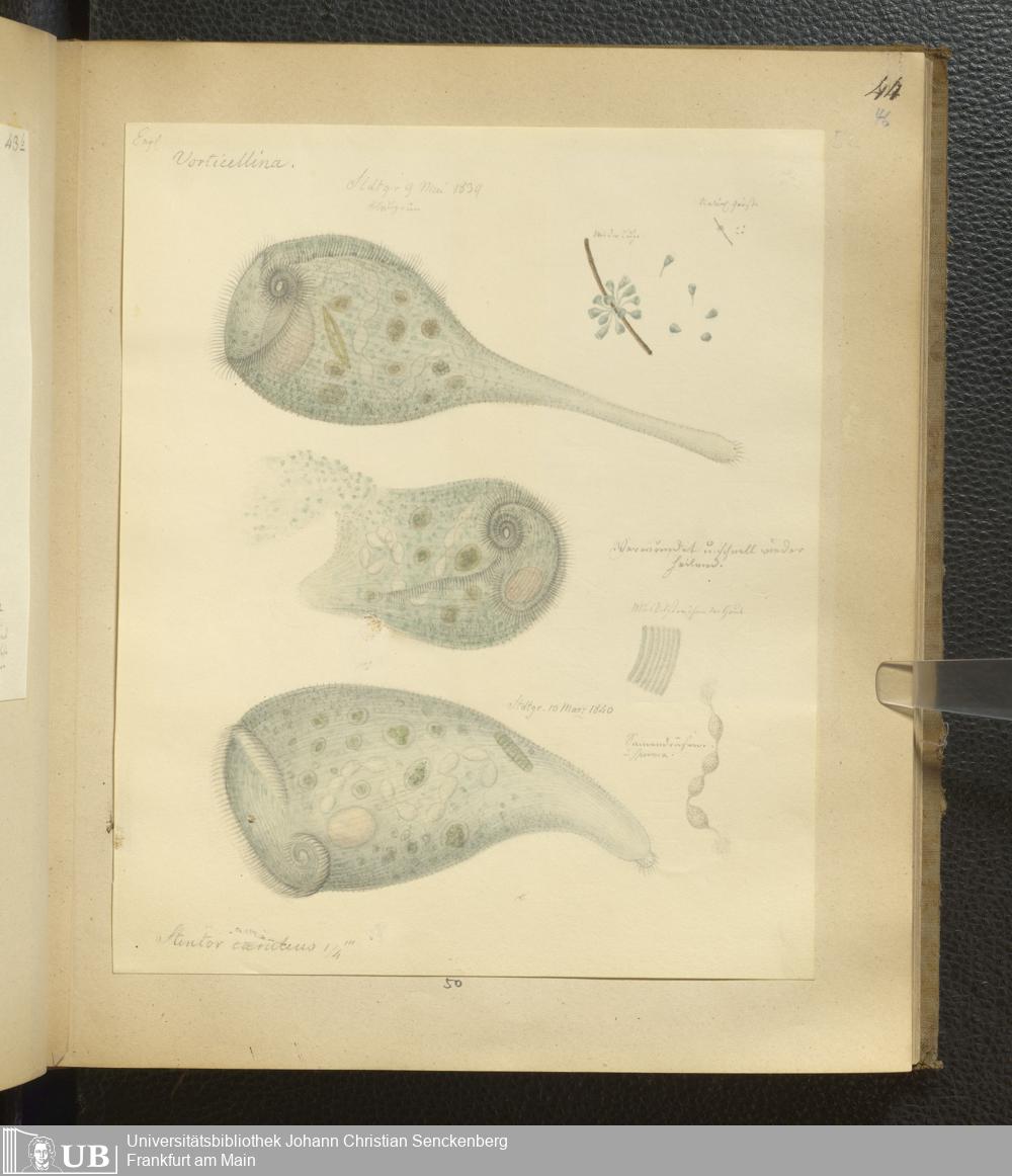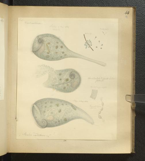 Soe 65 - Infusorien : beobachtet und gezeichnet, nach Ehrenberg bestim[m]t und geordnet von Dr. W. Soemmerring. Süßwasser Polypen, Entomostraca, Planarien u.a.m. Meistens in den Jahren 1838, 1839 u. 1840 gesam[m]elt u. gemalt