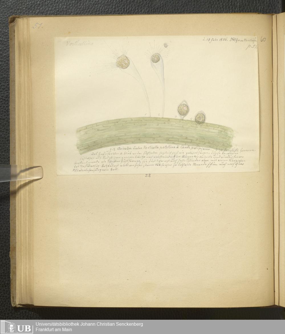 Soe 65 - Infusorien : beobachtet und gezeichnet, nach Ehrenberg bestim[m]t und geordnet von Dr. W. Soemmerring. Süßwasser Polypen, Entomostraca, Planarien u.a.m. Meistens in den Jahren 1838, 1839 u. 1840 gesam[m]elt u. gemalt