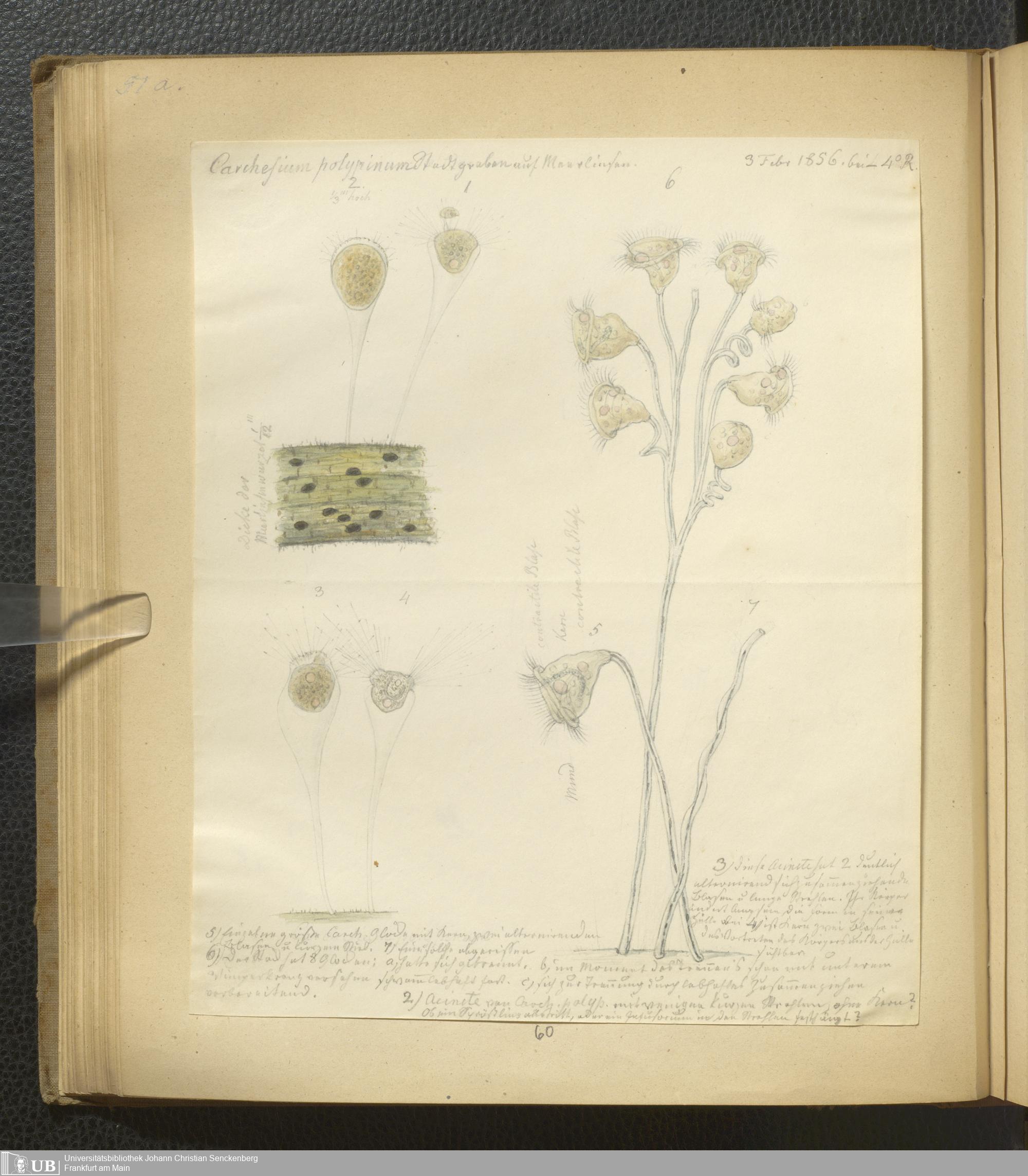 Soe 65 - Infusorien : beobachtet und gezeichnet, nach Ehrenberg bestim[m]t und geordnet von Dr. W. Soemmerring. Süßwasser Polypen, Entomostraca, Planarien u.a.m. Meistens in den Jahren 1838, 1839 u. 1840 gesam[m]elt u. gemalt