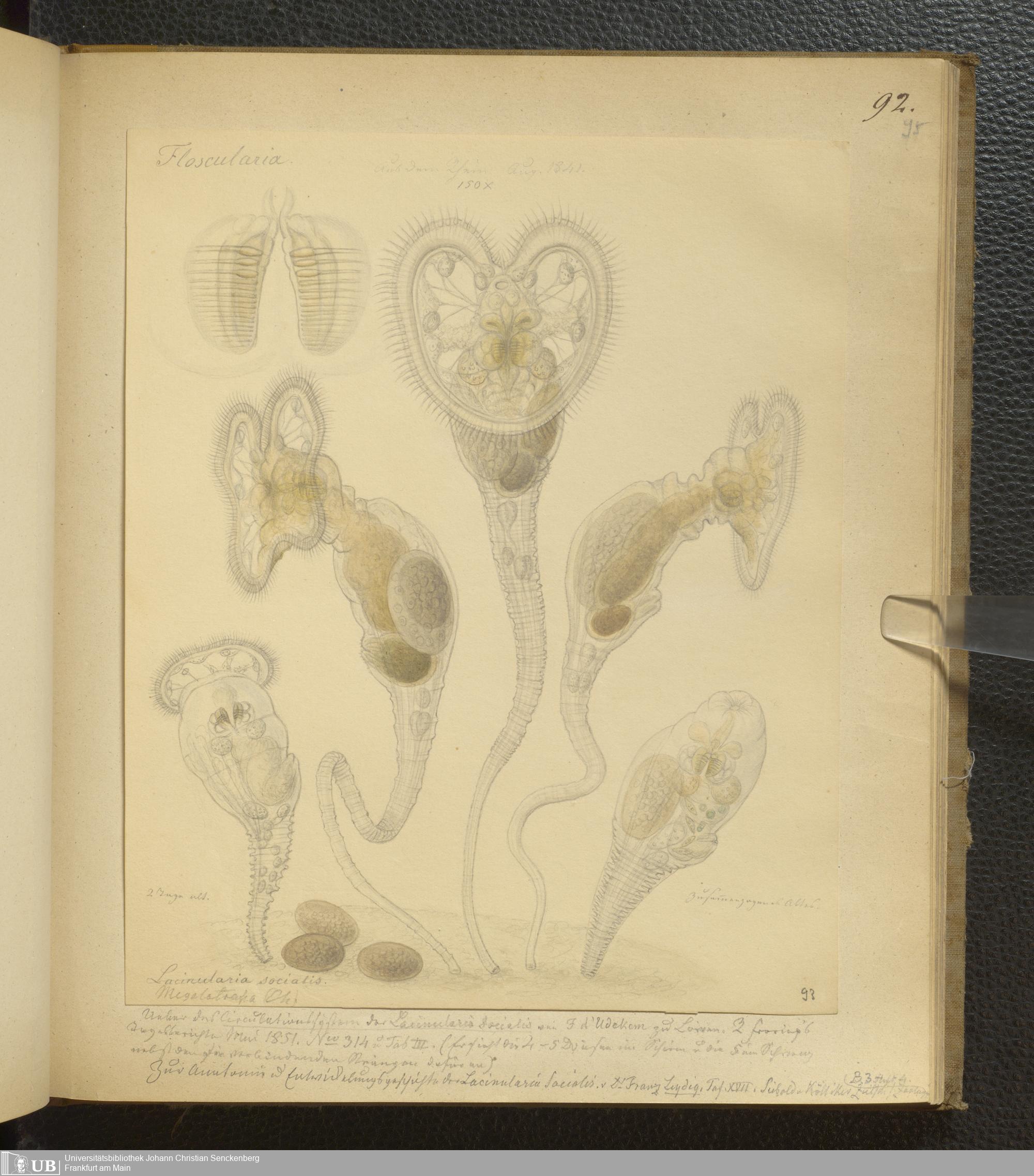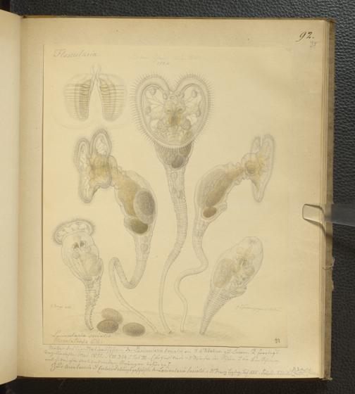Soe 65 - Infusorien : beobachtet und gezeichnet, nach Ehrenberg bestim[m]t und geordnet von Dr. W. Soemmerring. Süßwasser Polypen, Entomostraca, Planarien u.a.m. Meistens in den Jahren 1838, 1839 u. 1840 gesam[m]elt u. gemalt